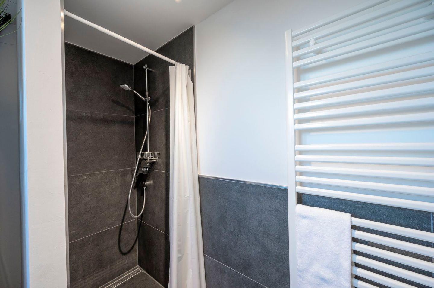 Im Erdgeschoss befinden sich die offene Wohnküche, die Essecke, das Wohnzimmer mit TV sowie der Zugang zur 25 m² großen Terrasse. Die Hinterhof-Terrasse liegt komplett geschützt und sehr ruhig.