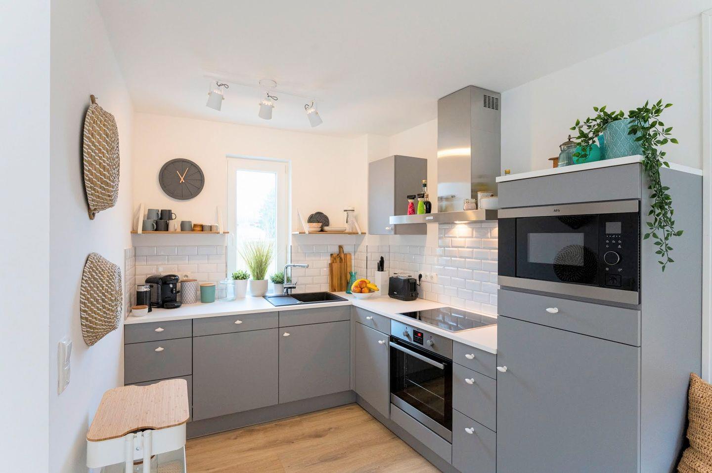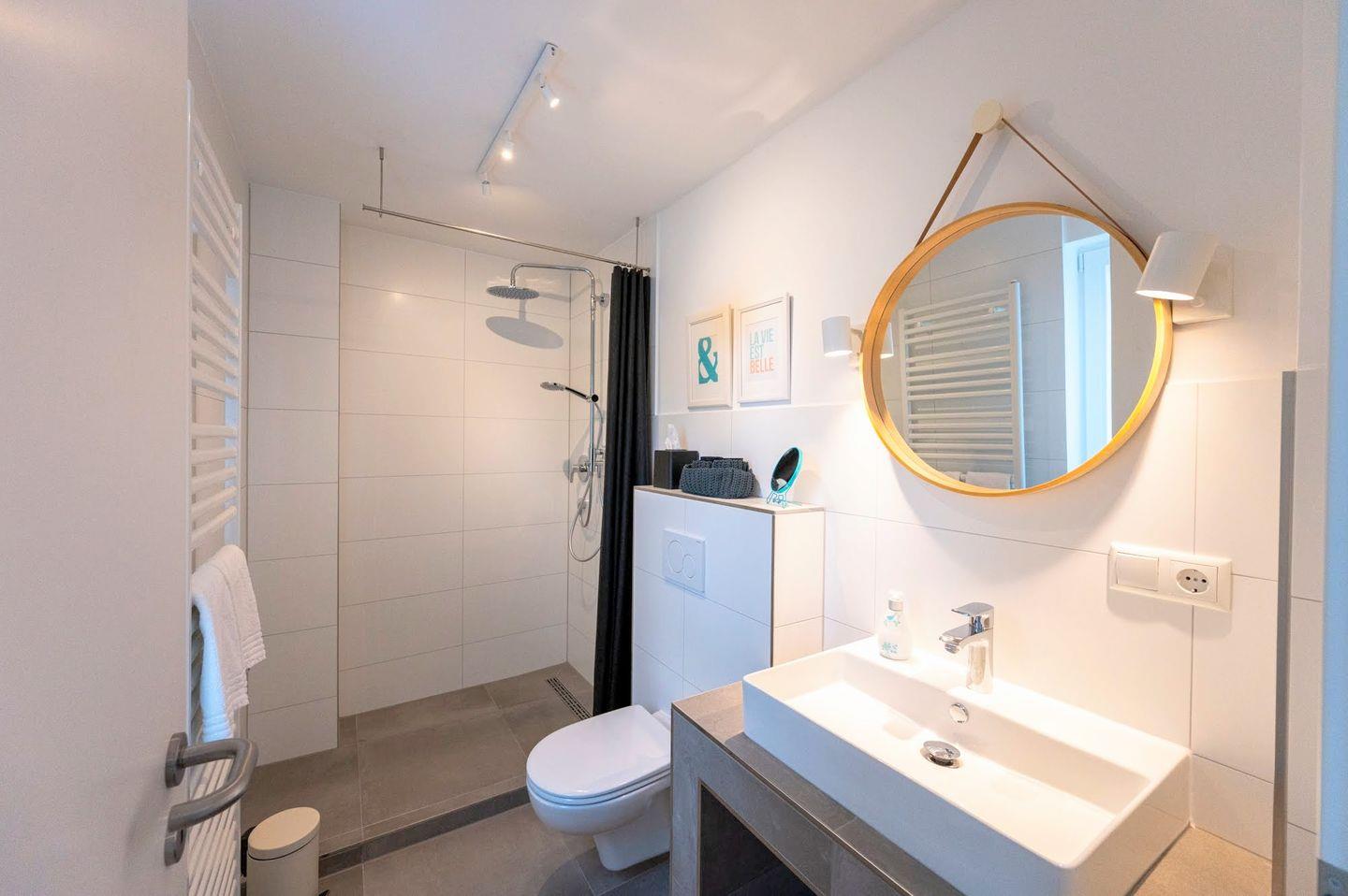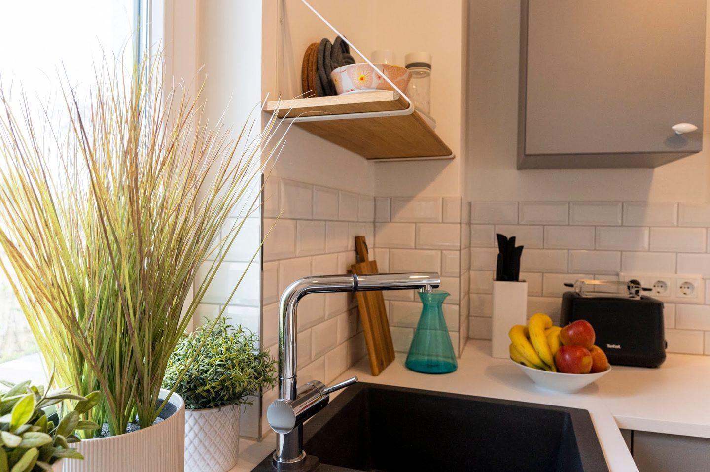 Im Erdgeschoss befinden sich ein Gäste-WC, die offene Wohnküche, eine Essecke, das Wohnzimmer mit Smart-TV sowie der Zugang zur 25 m² großen Terrasse. Die vollständig geschützte und sehr ruhige Hinterhof-Terrasse wird durch eine schöne Sauna ergänzt.
