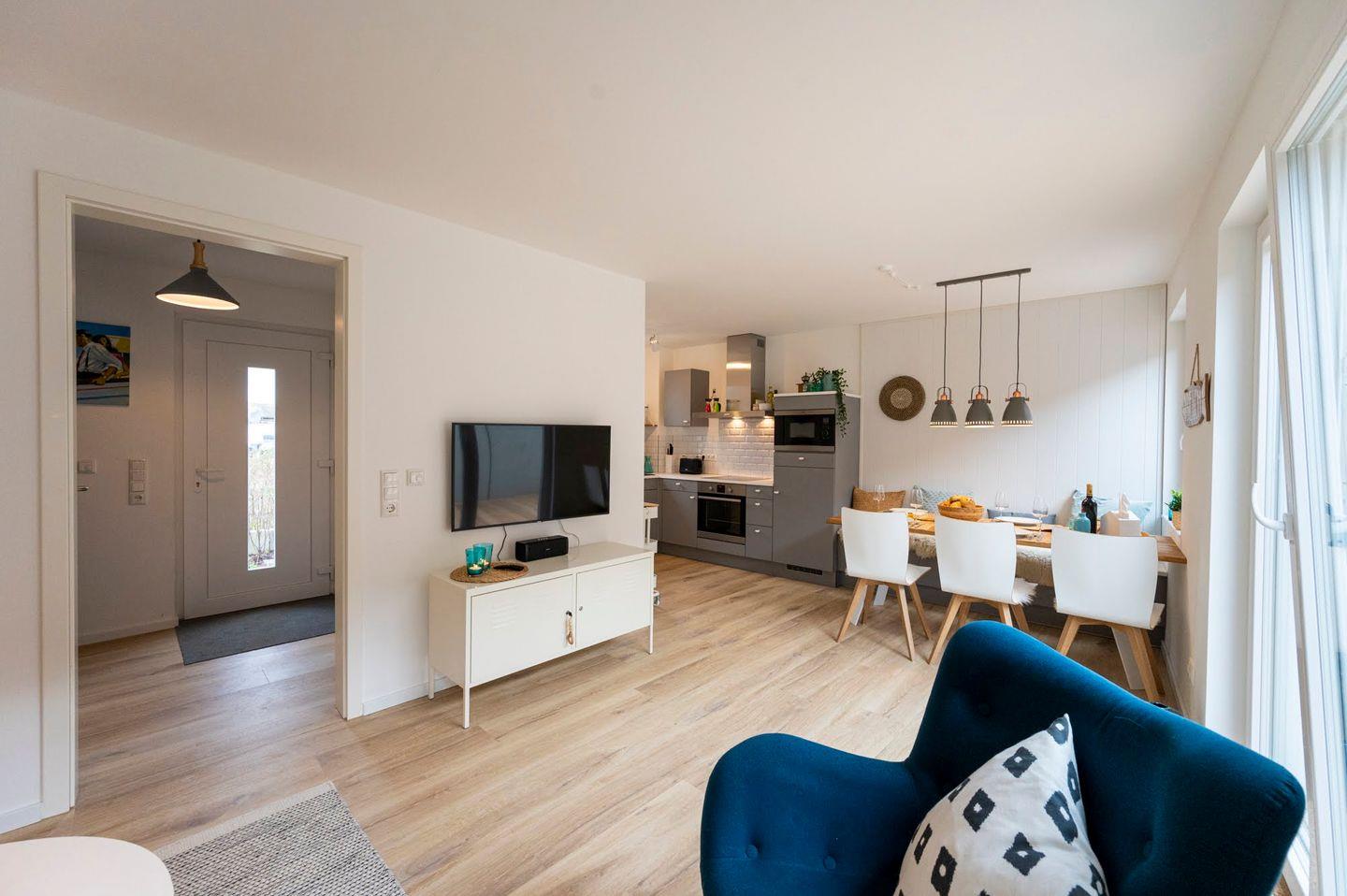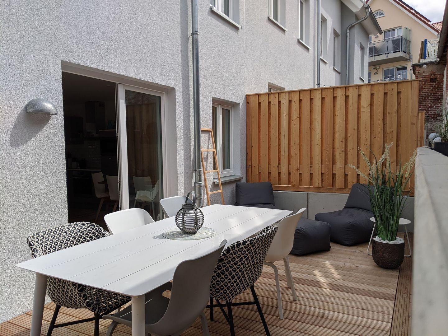 Skandinavisches Townhouse für 6 Personen mit 3 SZ, Sauna und ruhiger Terrasse - zentrale Lage in Heiligenhafen & 900m zum Strand