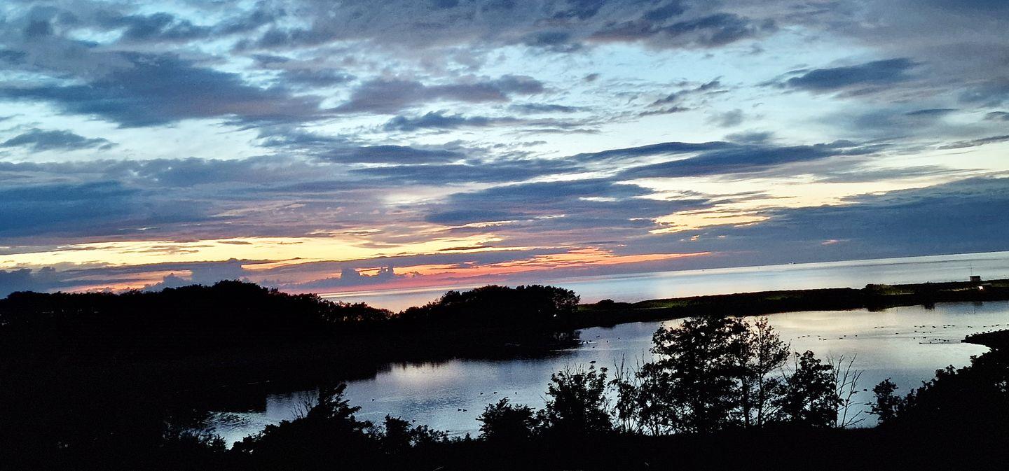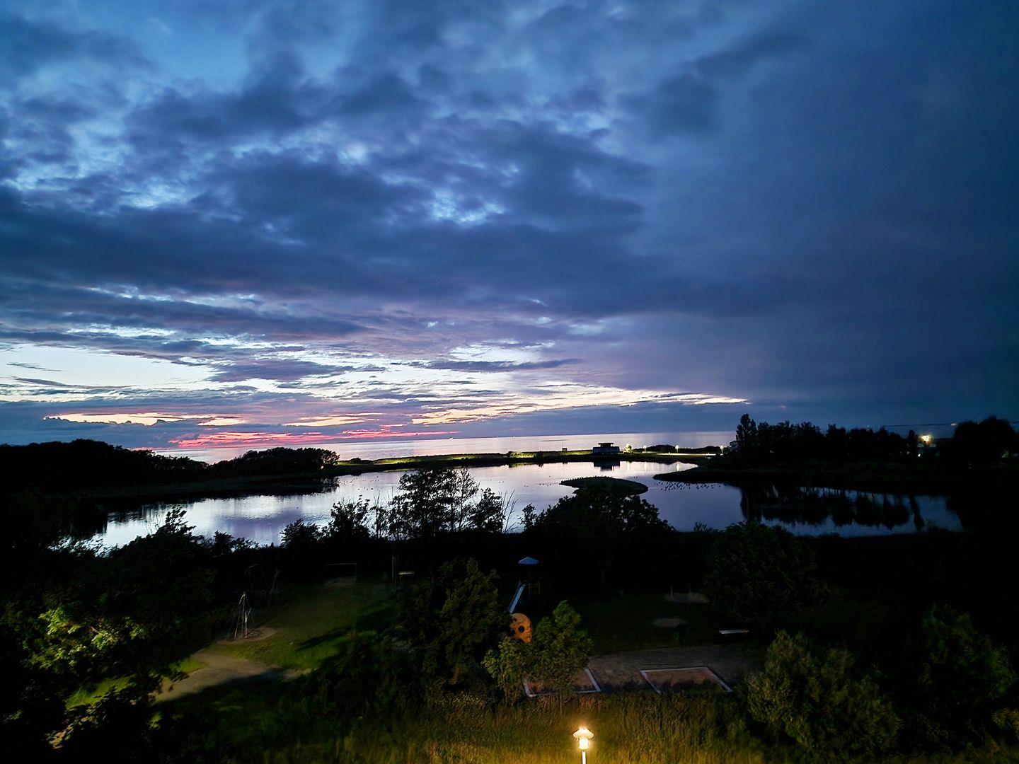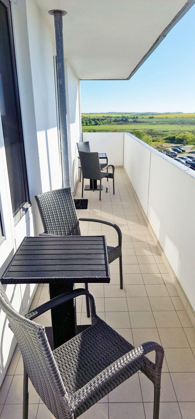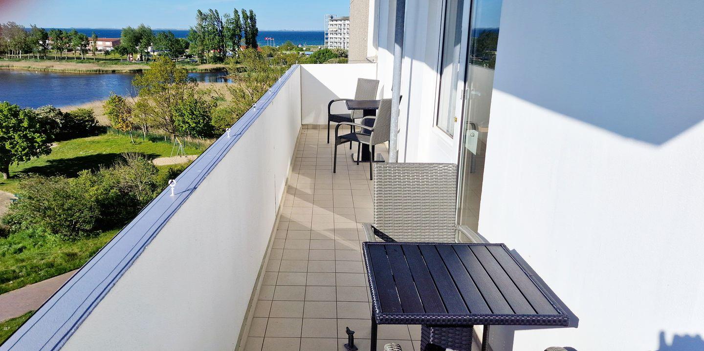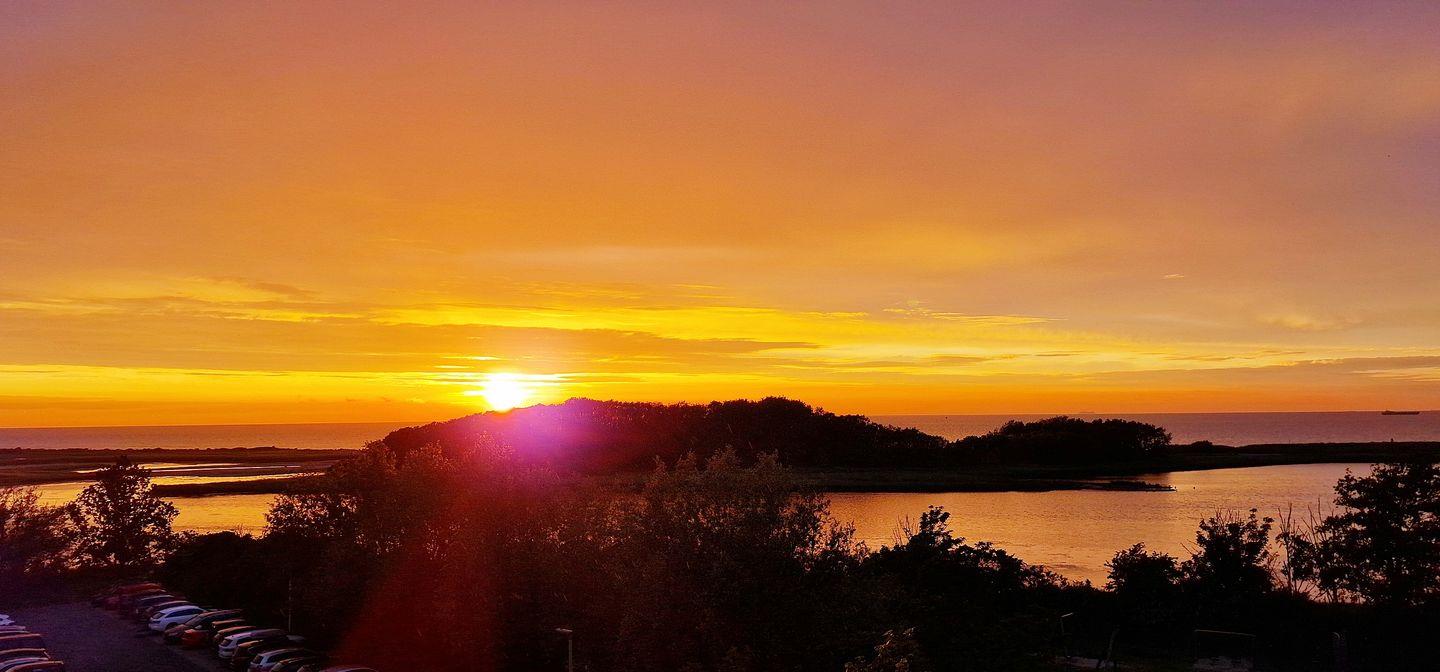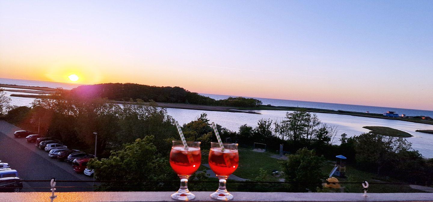 Von dem 9m langen, uneinsehbaren Balkon kann man wunderschöne Sonnenuntergänge und die verschiedenen Seevogelstimmen bis in den späten Abend genießen.