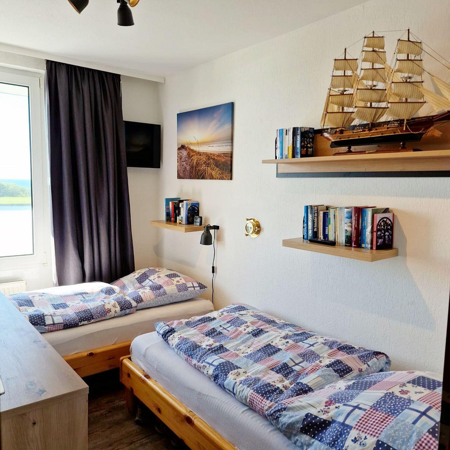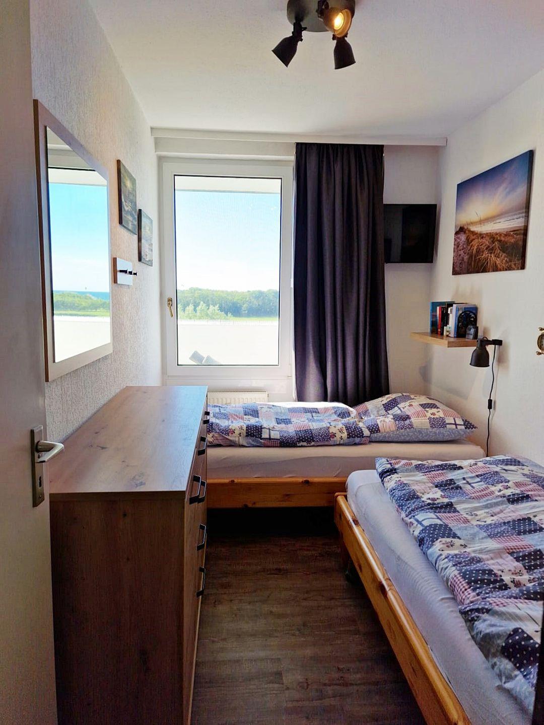 Das umgebaute Schlafzimmer mit zwei Einzelbetten (1 x 90*190, 1x 90*200) hat einen eigenen Zugang mit Tür und verfügt über einen eigenen 32" Samsung-Smart-TV).
