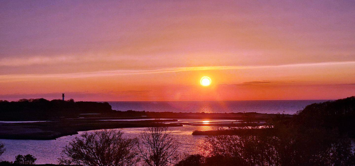 Genießen Sie den herrlichen Blick auf die Ostsee, die Natur der Salzwiesen mit den unter Naturschutz stehenden Wasserflächen bis hin zum Leuchtturm!