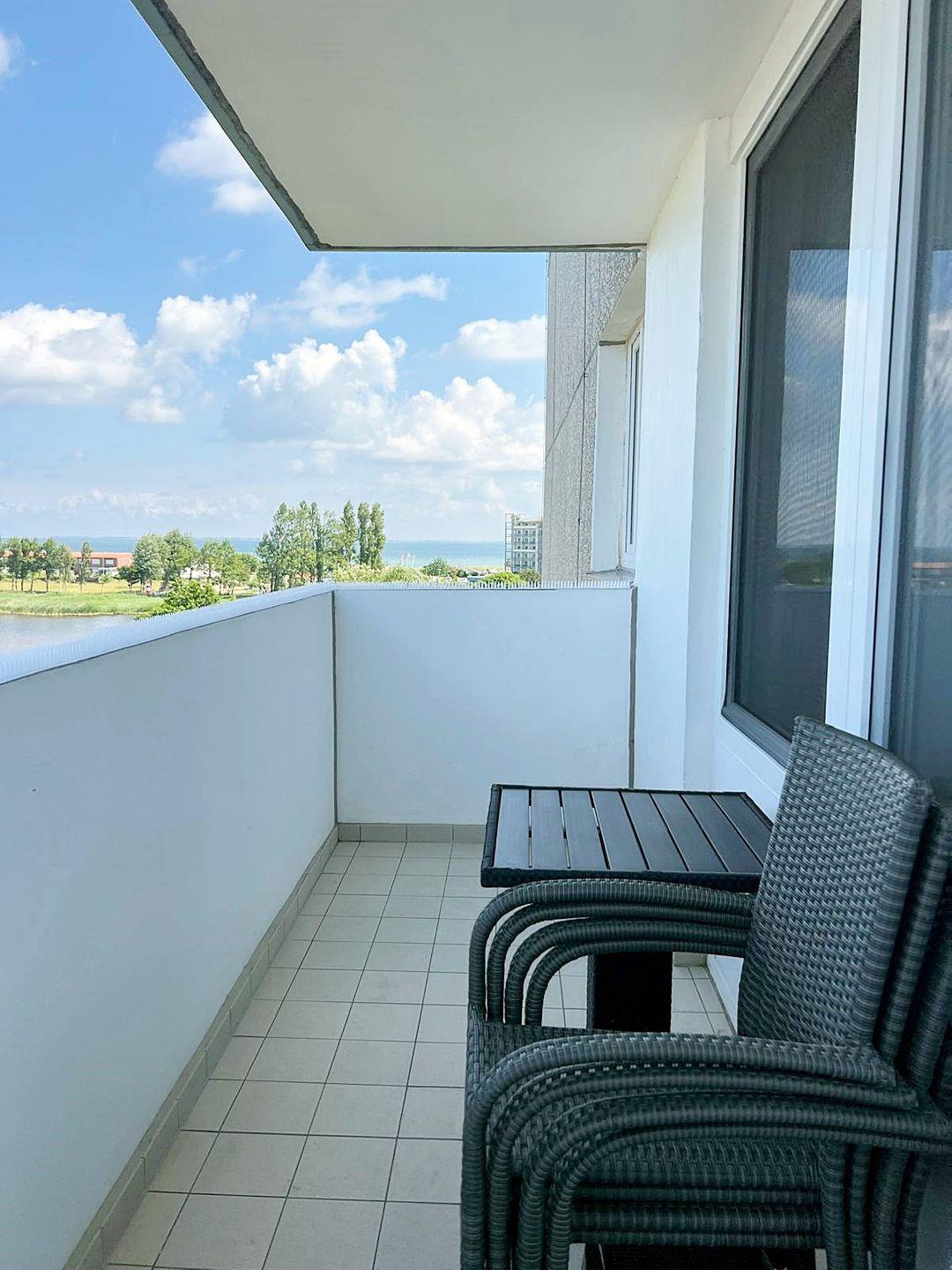 Schöne, ansprechende Ferienwohnung, komplett mit Vinyl ausgelegt in der 4. Etage mit Nord-West-Balkon.