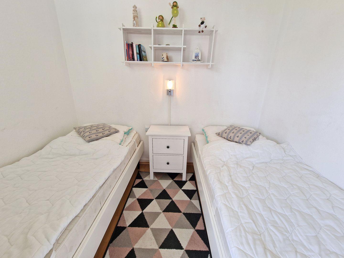 Im Kinderzimmer befinden sich ebenfalls 2 Einzelbetten - auch ein Fenster zum Öffnen sowie ein Verdunklungsrollo sind vorhanden.