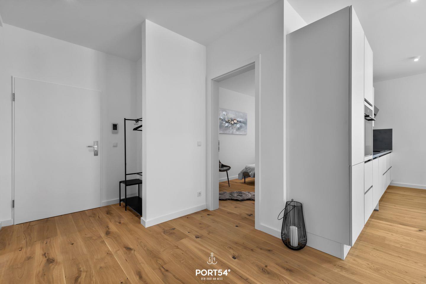 Von der Wohnung aus gelangen Sie direkt auf den Balkon, wo Sie die frische Meeresluft und den Blick auf die Umgebung genießen können. Die ruhige Lage der Wohnung sorgt für eine entspannte Atmosphäre. Dank der Innenstadtlage sind Einkaufsmöglichkeiten, Restaurants und Cafés nur wenige Schritte entfernt, während der feinsandige Strand nur 500 Meter entfernt ist. Hier können Sie entspannte Tage in der Sonne, lange Strandspaziergänge oder aufregende Wassersportarten wie Windsurfen und Segeln verbringen.