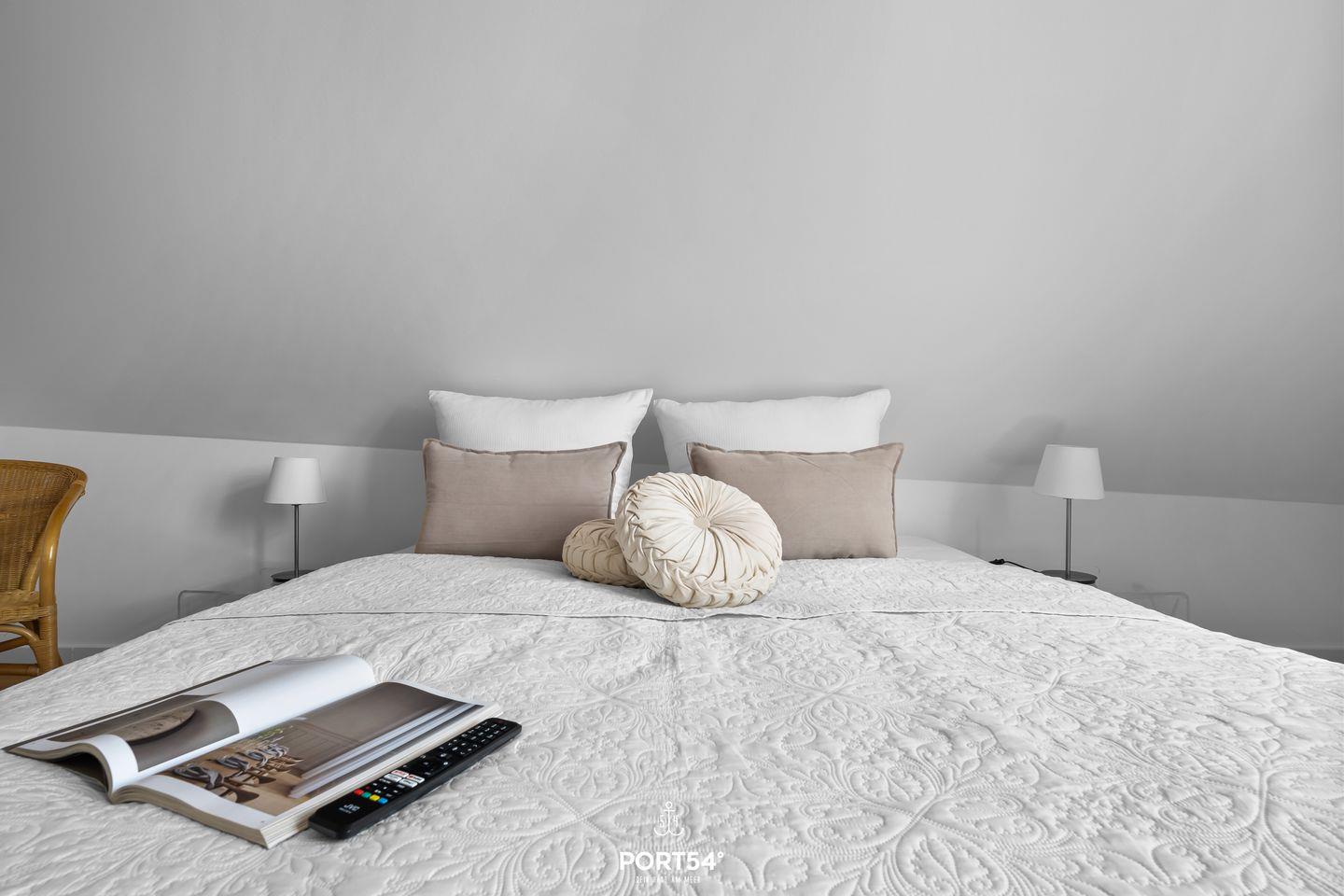 Die Wohnung verfügt über zwei gemütliche Schlafzimmer, die mit hochwertigen Parkettböden und Betten ausgestattet sind und eine erholsame Nachtruhe garantieren. Das geräumige Wohnzimmer besticht durch ein modernes Design und ist mit einem TV-Gerät ausgestattet, sodass Sie nach einem Tag am Strand gemütlich einen Filmabend genießen können. Der offene Wohn- und Essbereich lädt zu gemeinsamen Mahlzeiten ein und die komplett ausgestattete Küche lässt keine Wünsche offen. Hier finden Sie alles, was Sie benötigen – vom Cerankochfeld über einen Elektrobackofen bis hin zu einer Spülmaschine. Damit wird das Kochen zum Vergnügen!