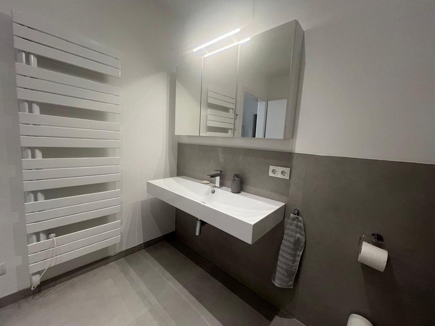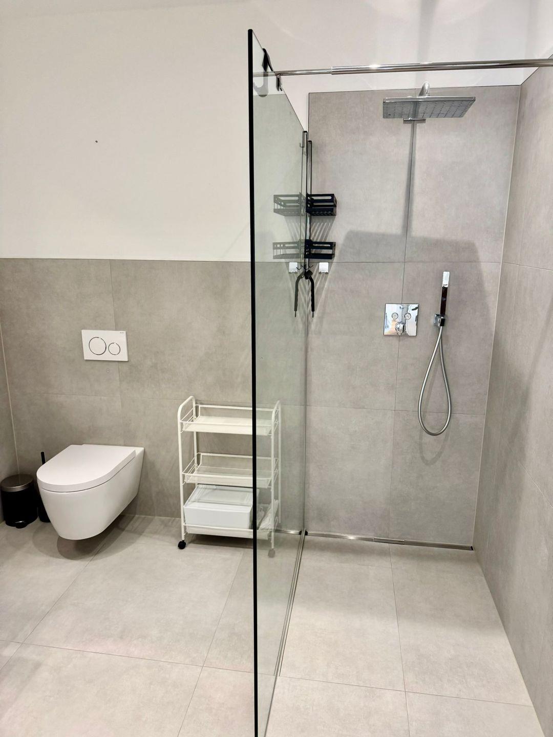 Das Badezimmer verfügt neben der bodengleichen Dusche und einem modernen Waschbecken auch über einen Haartrockner und Kosmetikspiegel. Für die kleinen Gäste stehen ein Kinderhochstuhl sowie ein Kindertoilettensitz zur Verfügung, was insbesondere Familien sehr entgegenkommt. Die Wohnung ist zudem allergikerfreundlich eingerichtet und bietet Sichtschutz an allen Fenstern.
