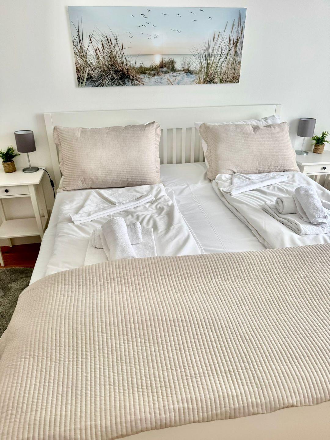 Die Kurzzeitwohnung Pier 6 Heiligenhafen bietet Ihnen auf großzügigen 85 m² modernen Komfort und eine stilvolle Ausstattung – ideal für Familien, Paare oder Geschäftsreisende, die eine exzellente Unterkunft im Zentrum von Heiligenhafen suchen. Die 2025 errichtete Wohnung befindet sich im 1. Stockwerk eines modernen Gebäudes und verfügt über zwei separate Schlafzimmer, ein komfortables Badezimmer mit bodengleicher Dusche sowie einen offenen Wohn-, Ess- und Küchenbereich, der zum Wohlfühlen und Verweilen einlädt.