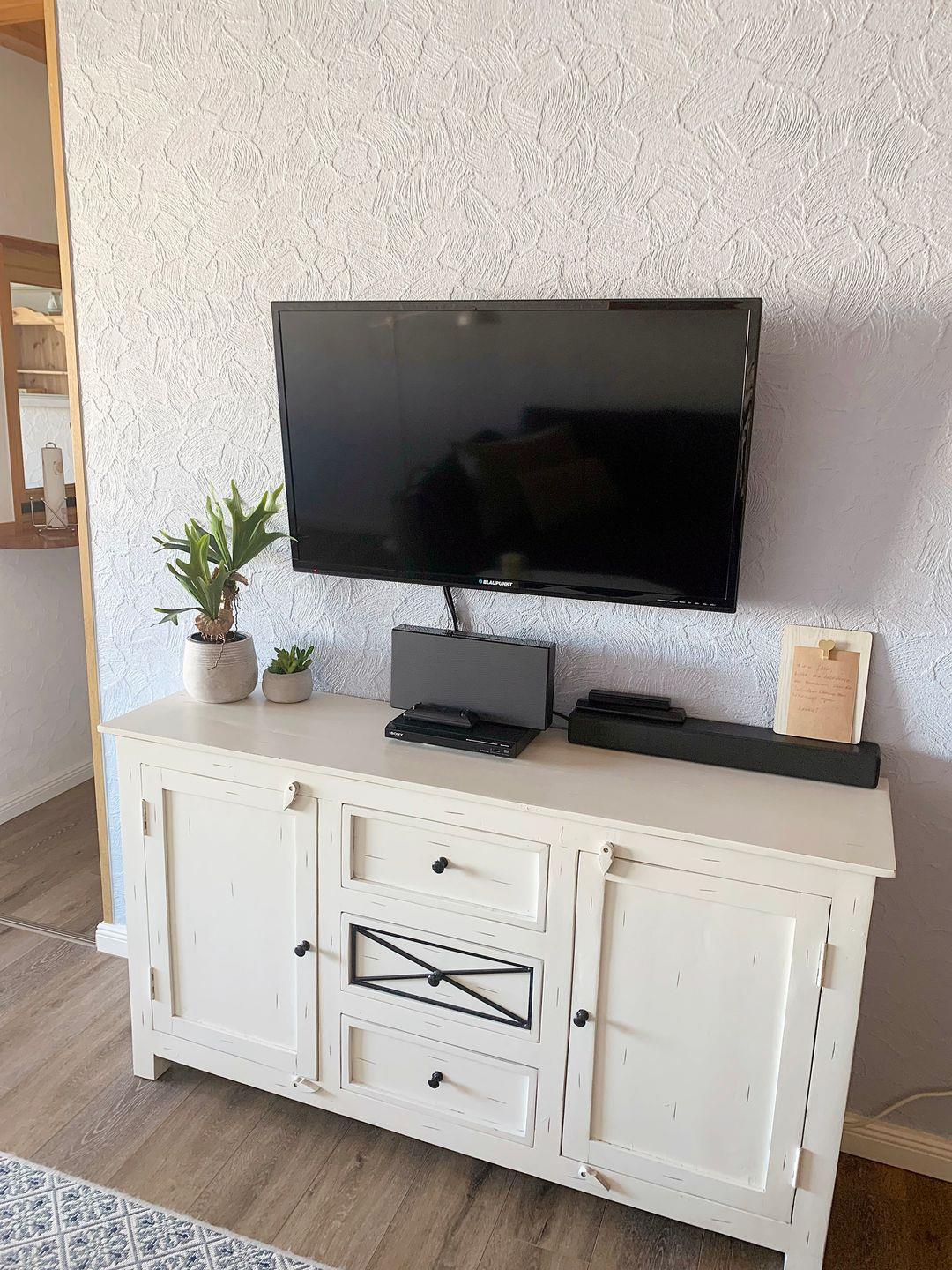 Im hellen, modernen kombinierten Wohn-/Schlafraum finden Sie eine gemütliche Couchgarnitur vor. Der Essplatz befindet sich am Fenster. Weiterhin ist ein Flachbild-TV mit Soundbar, ein DVD-Player, sowie Stereo-Anlage und vorhanden.