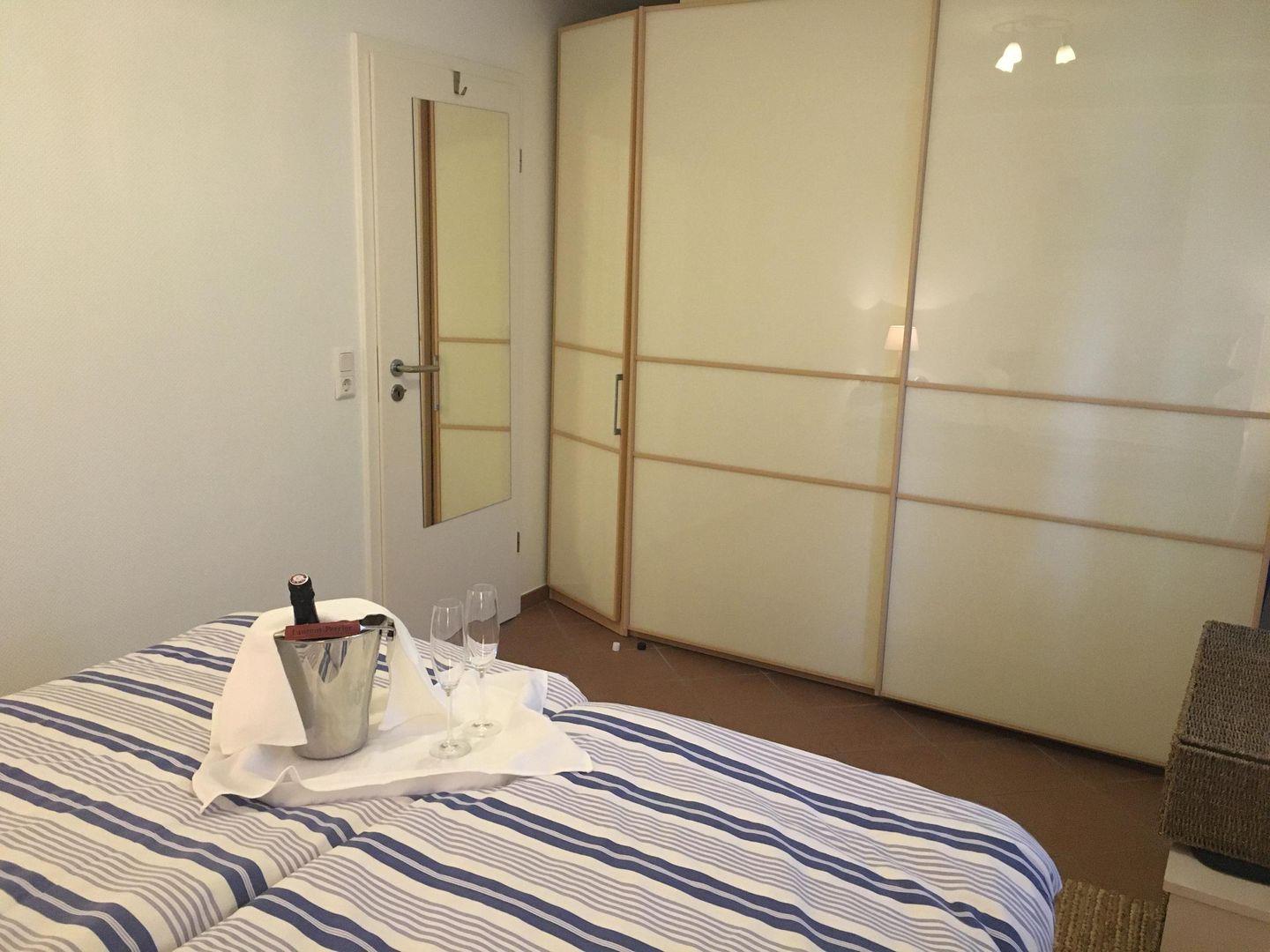 Im Schafzimmer mit Fenster finden Sie einen großen Kleiderschrank, Ganzkörperspiegel und ein großes, gemütliches Doppelbett (2*80*200 cm) vor. Ein weiteres TV-Gerät, sowie einen Safe finden Sie im Kleiderschrank.
