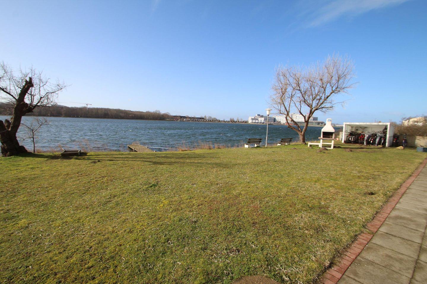 Auf der Terrasse genießen Sie den herrlichen Blick auf den See, der direkt hinter der Liegewiese mit gemeinschaftlich nutzbarem Kamingrill beginnt. Im Strandkorb sind Sie hier auch an windigen Tagen optimal geschützt. Sonnenschirm, Sonnenliegen, Tisch, Stühle und passende Auflagen komplettieren die Ausstattung.