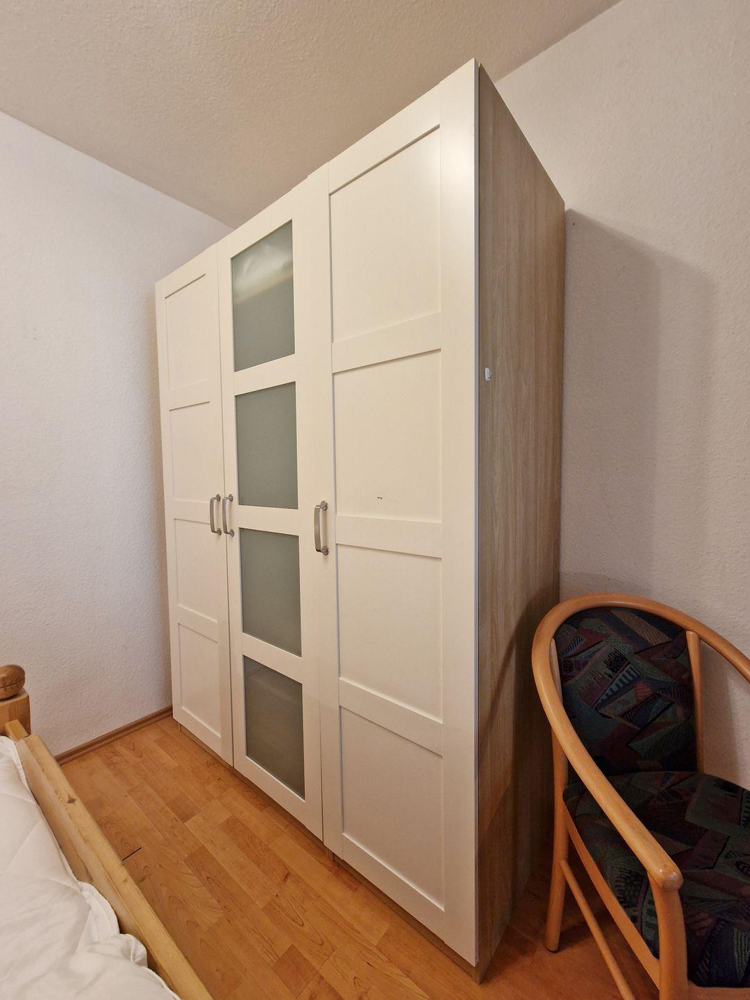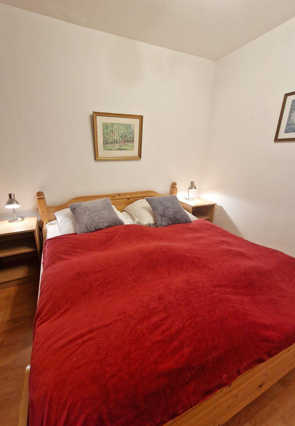 Der Elternschlafbereich ist durch einen Vorhang vom Wohnbereich abgegrenzt. Hier steht Ihnen ein großes Doppelbett (2*90*200 cm) sowie ein großer Kleiderschrank zur Verfügung.