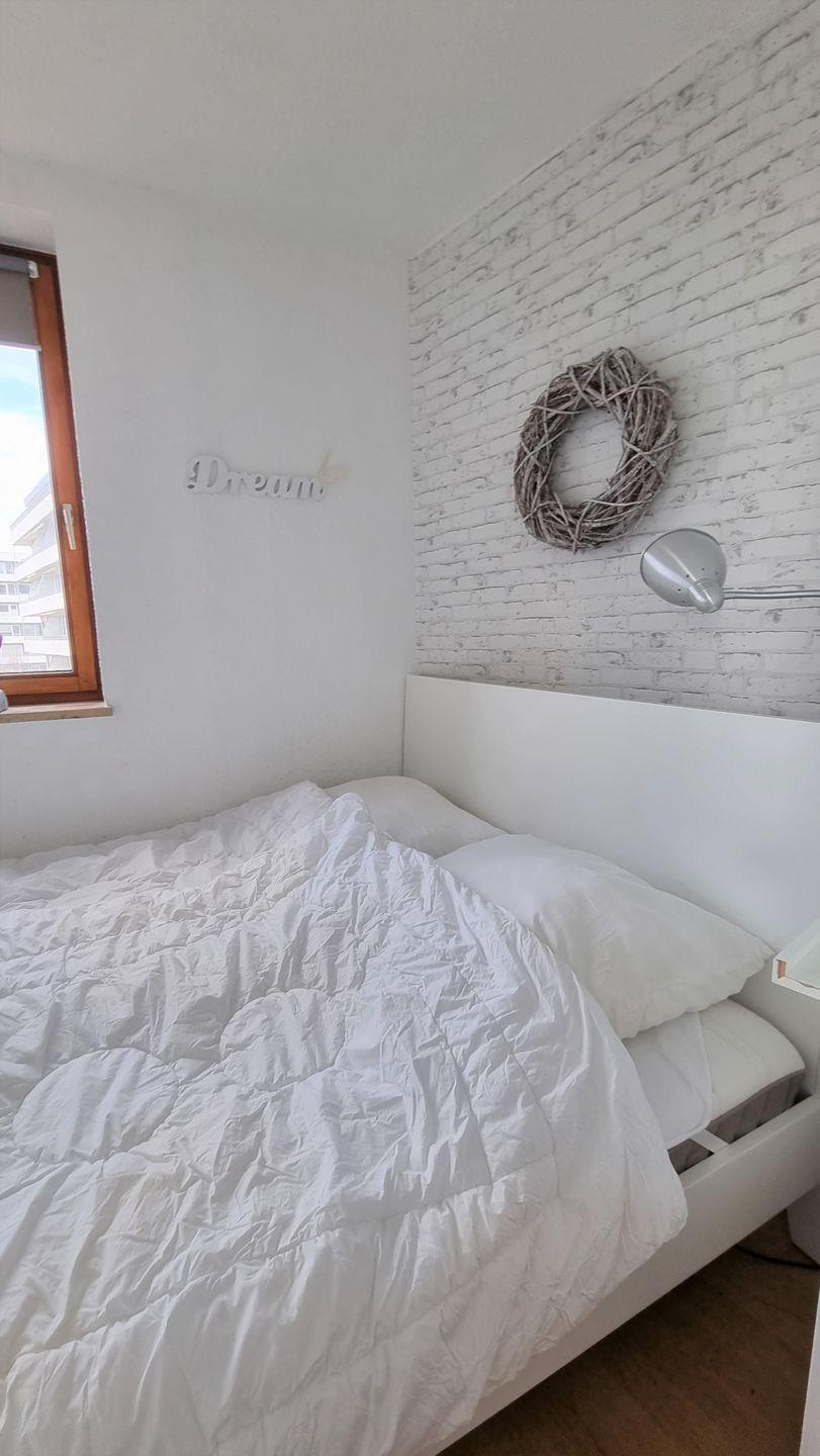 Das liebevoll eingerichtete Apartment bietet neben zwei Schlafzimmern – eines davon mit bequemem Doppelbett – ein gemütliches Wohn-Esszimmer mit gut ausgestatteter Küchenzeile und einen Südbalkon. Auf den gemütlichen 43 m2 findet eine Familie mit vier Personen Platz, Hunde sind ebenfalls willkommen.