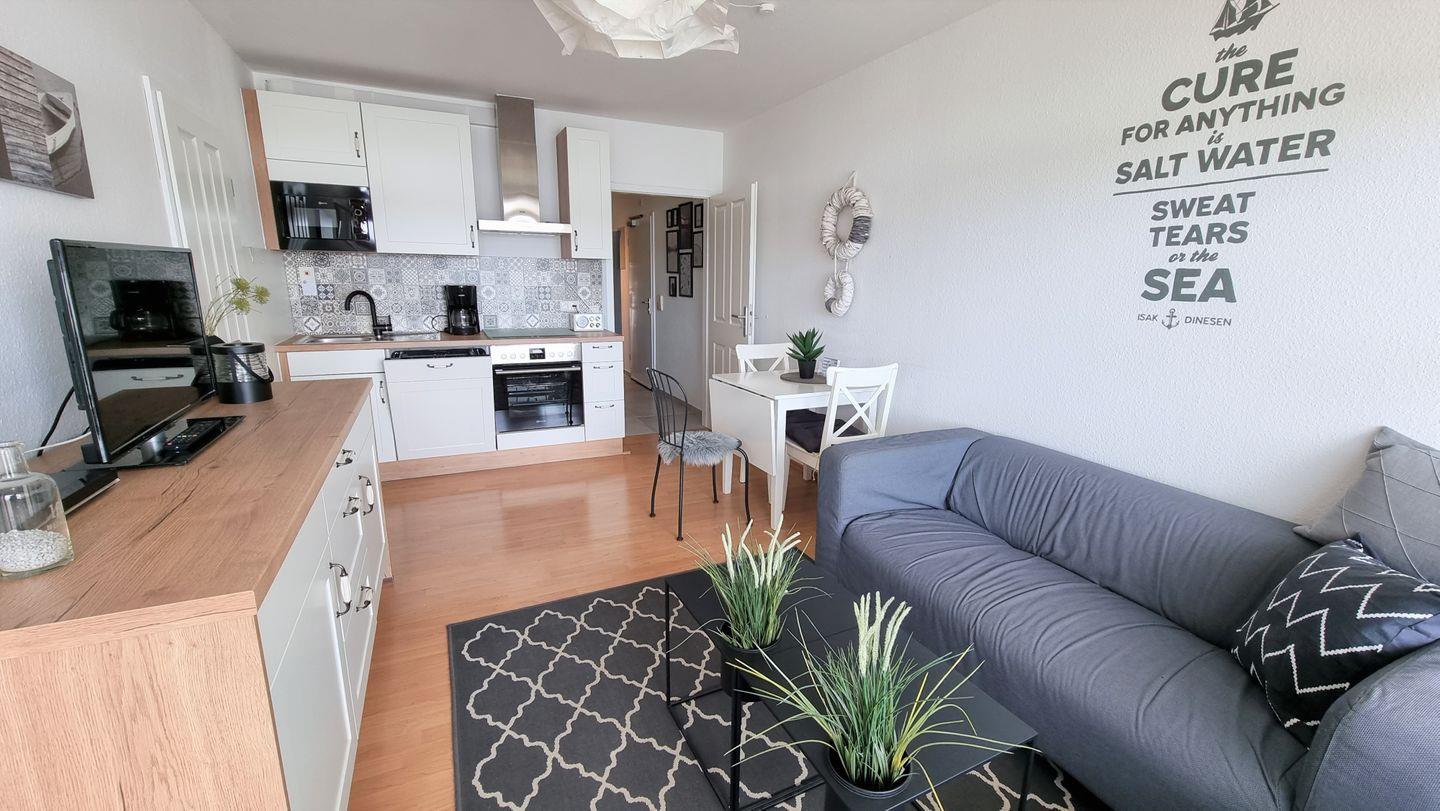Willkommen am Meer! Die moderne und maritime Einrichtung verrät gleich, wo man sich befindet: direkt am Meer, zwischen Ostseestrand und Binnensee.