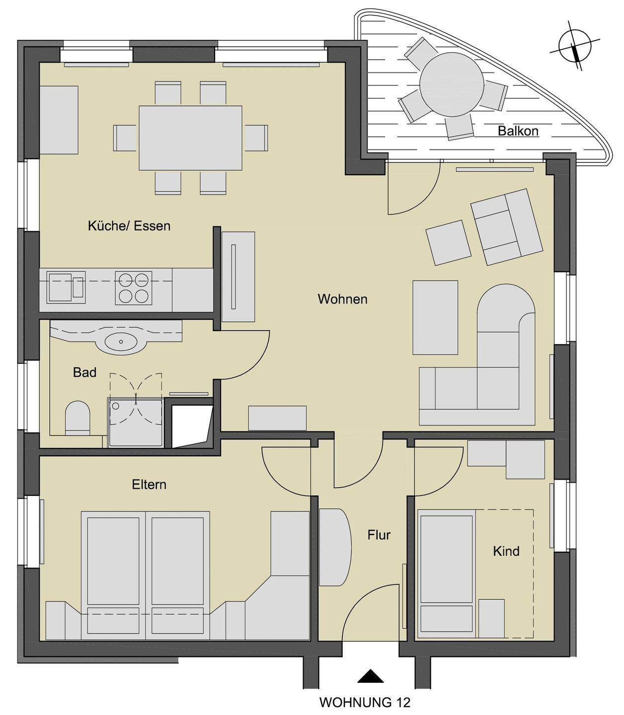 Personen: 4 | Zimmer: 3 | Lage: Süd | Größe: 65 qm