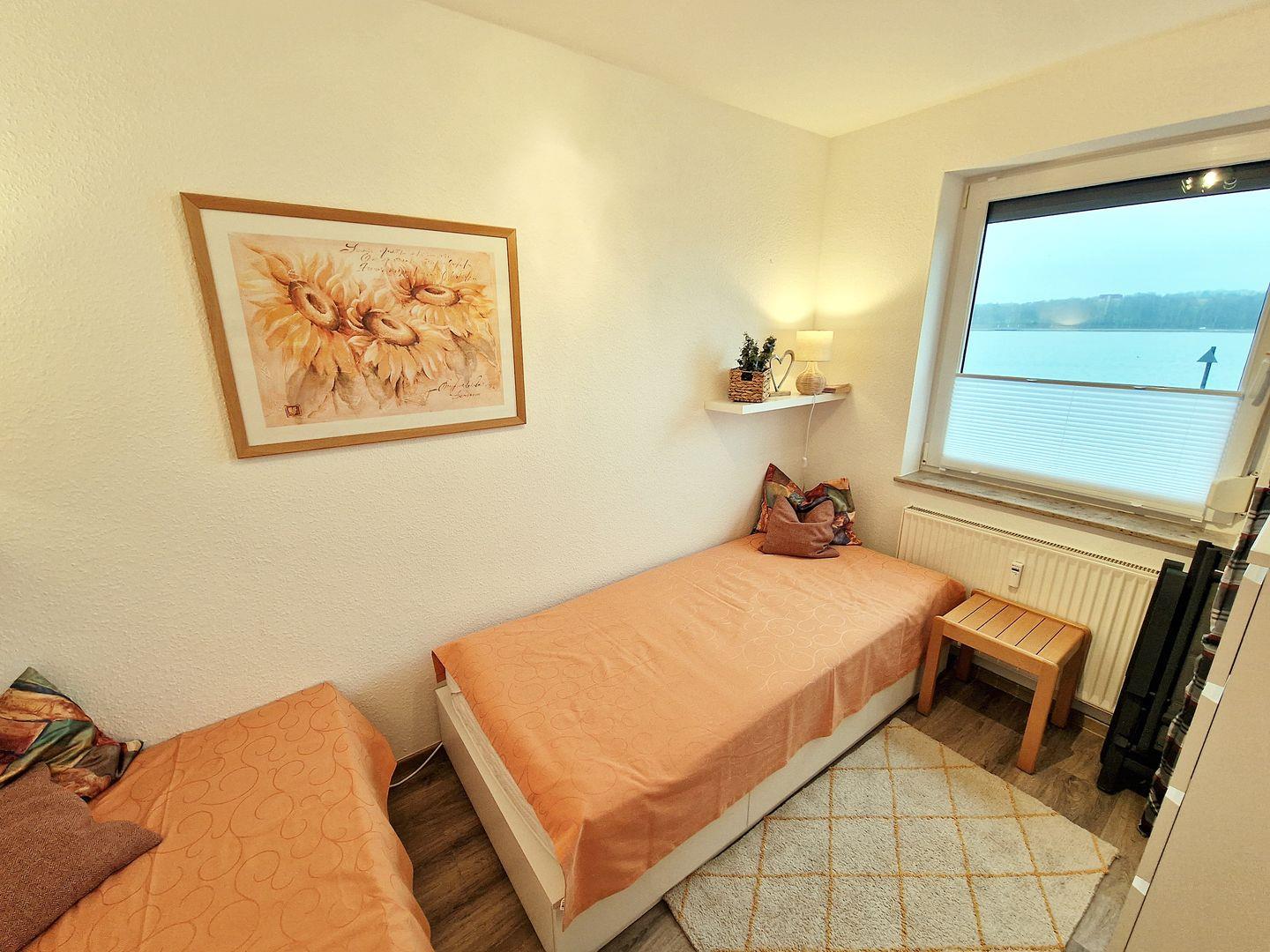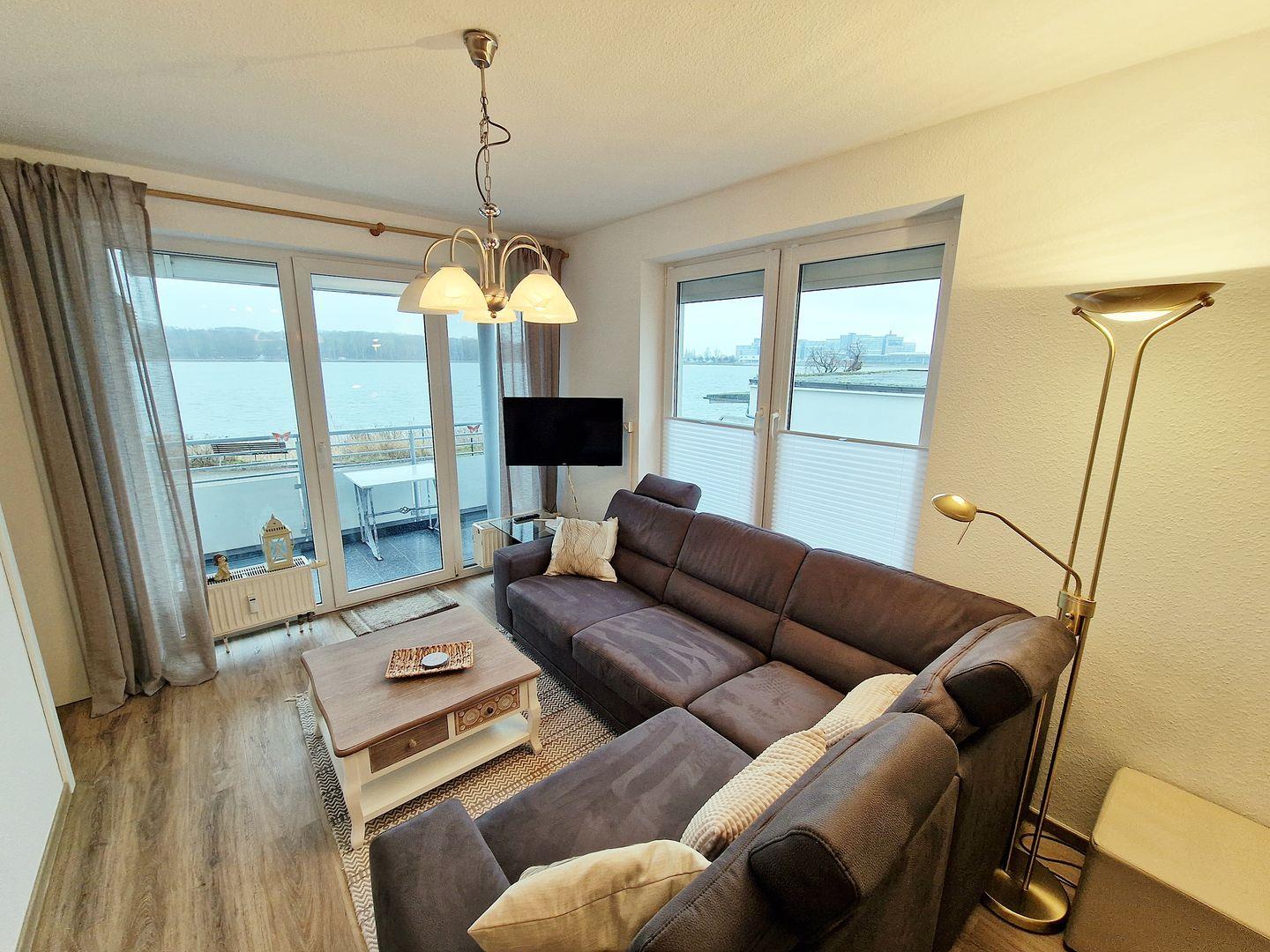 Vom sonnigen Südbalkon können Sie die Aussicht auf den Binnensee genießen.