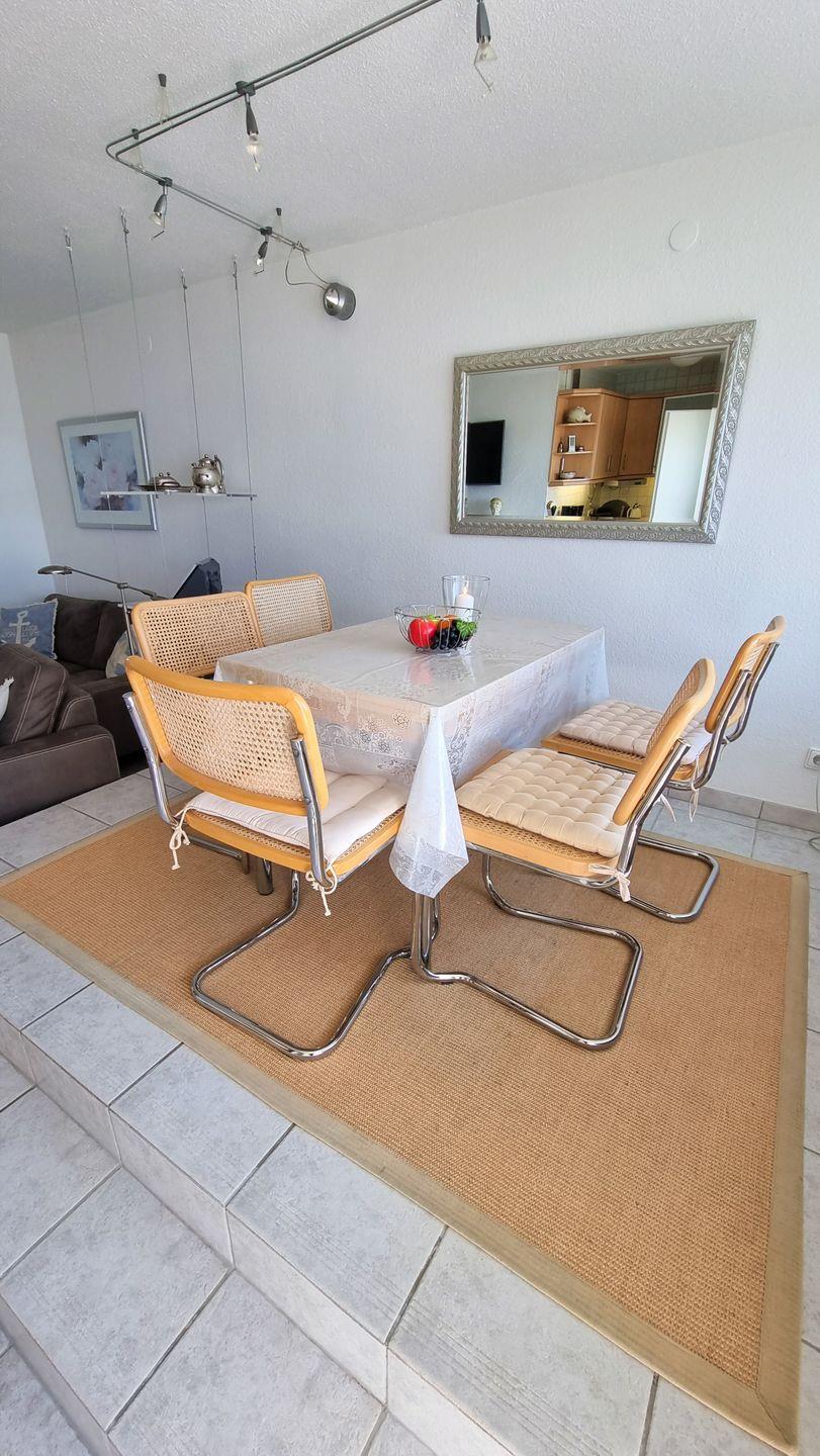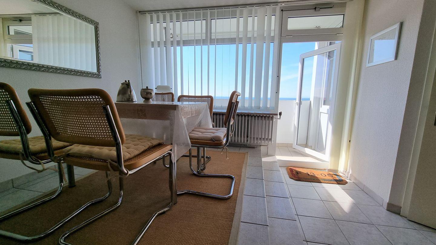 Die Essecke befindet sich direkt, am Fenster, höher gelegen, auf einem Podest. Der herrliche Ausblick lädt zu allen Mahlzeiten ein.