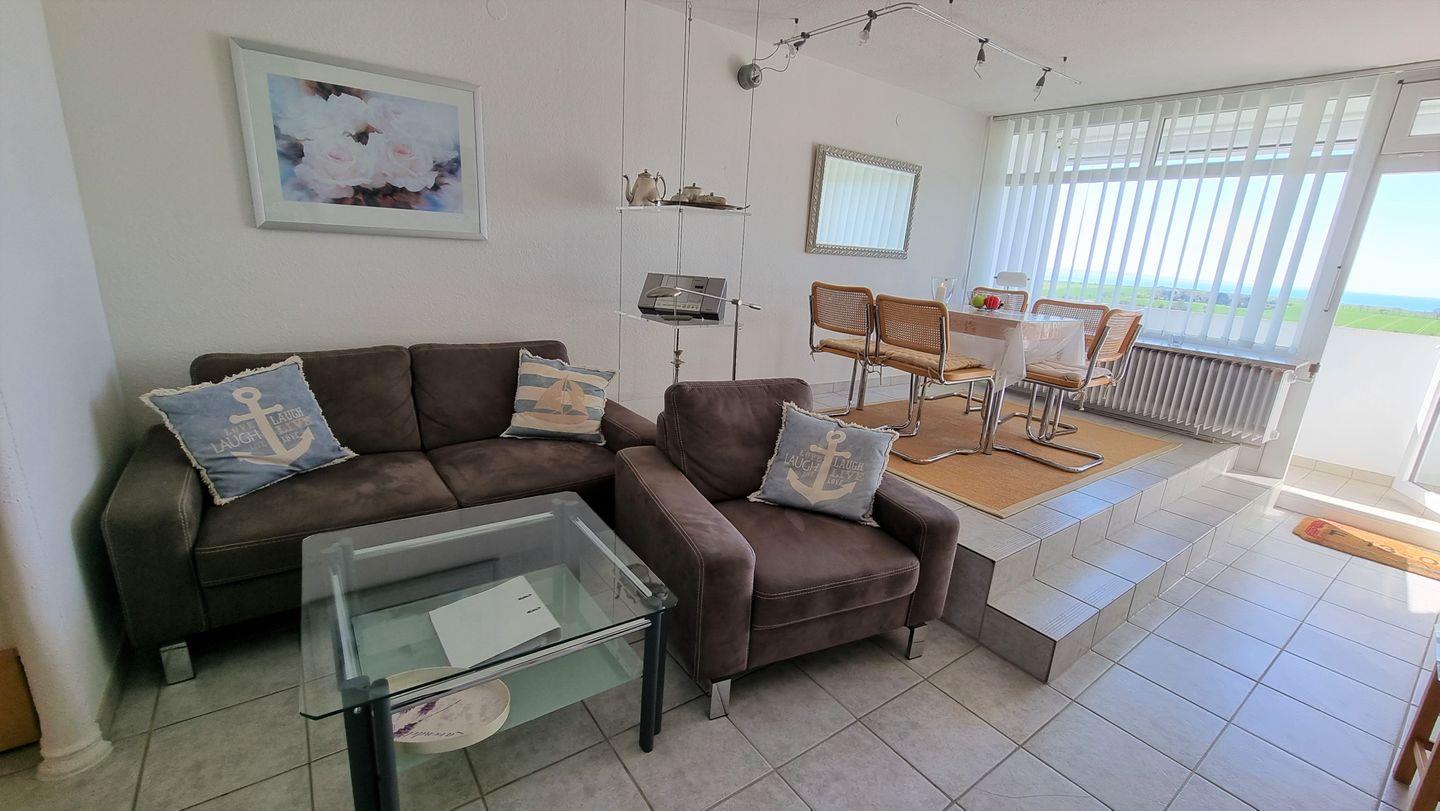Die gesamte Ferienwohnung ist mit hellen, großen Fliesen verlegt.