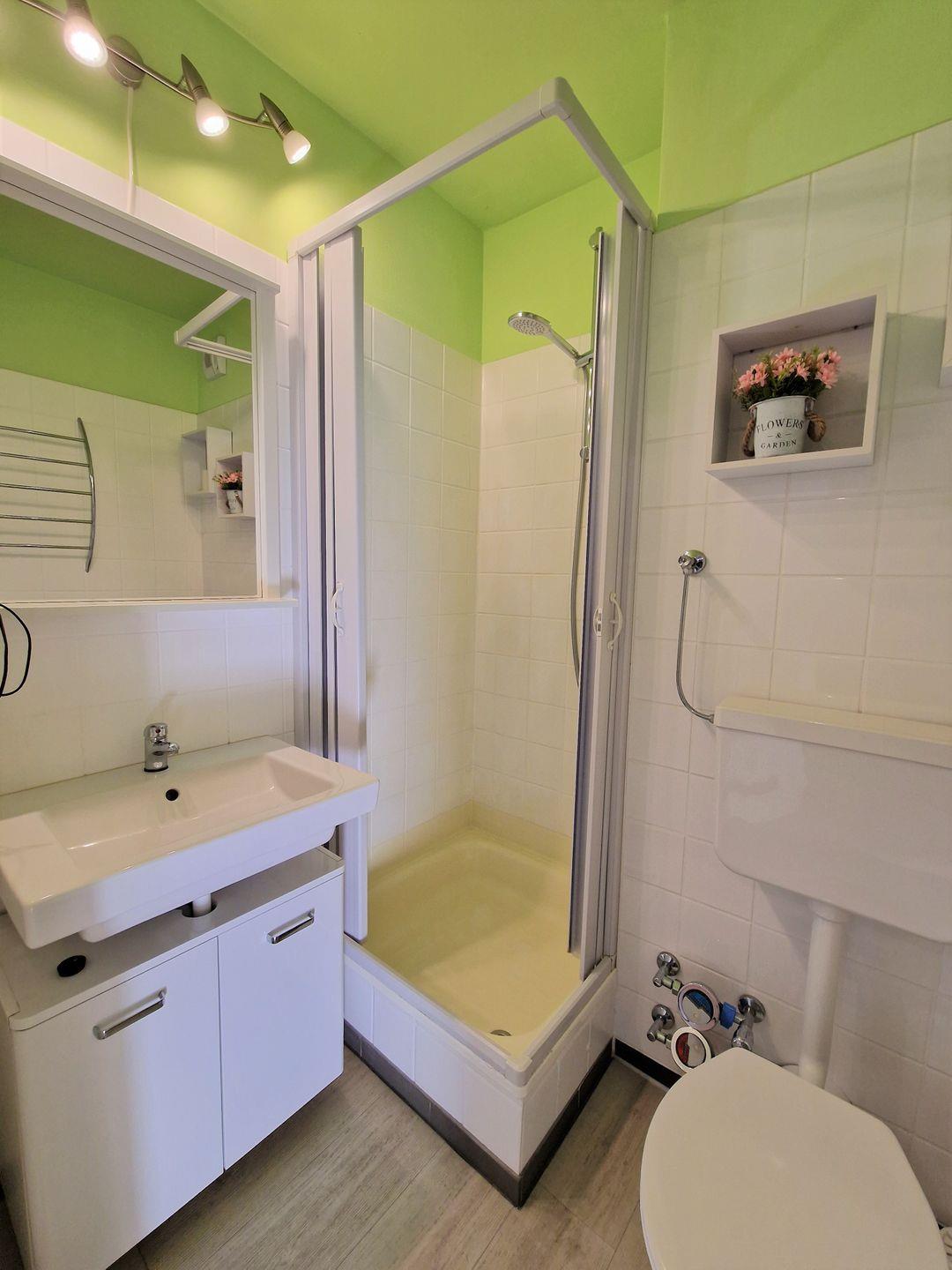 Das Badezimmer wurde erneuert und verfügt nun über eine tolle Duschkabine mit Falttüren, ein Schränkchen, kl. Regale und Stand-WC. Auf dem sonnigen Süd-Balkon laden wertige Holzmöbel (1 Tisch und 2 Stühle) zum Verweilen ein. Die Wohnung ist mit hochwertigem Design-PVC-Planken ausgelegt!