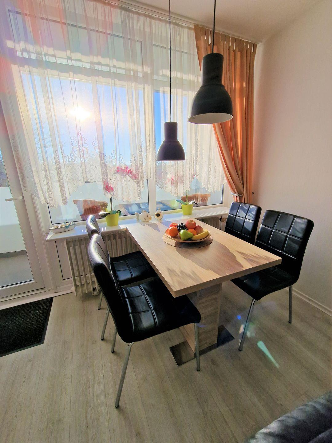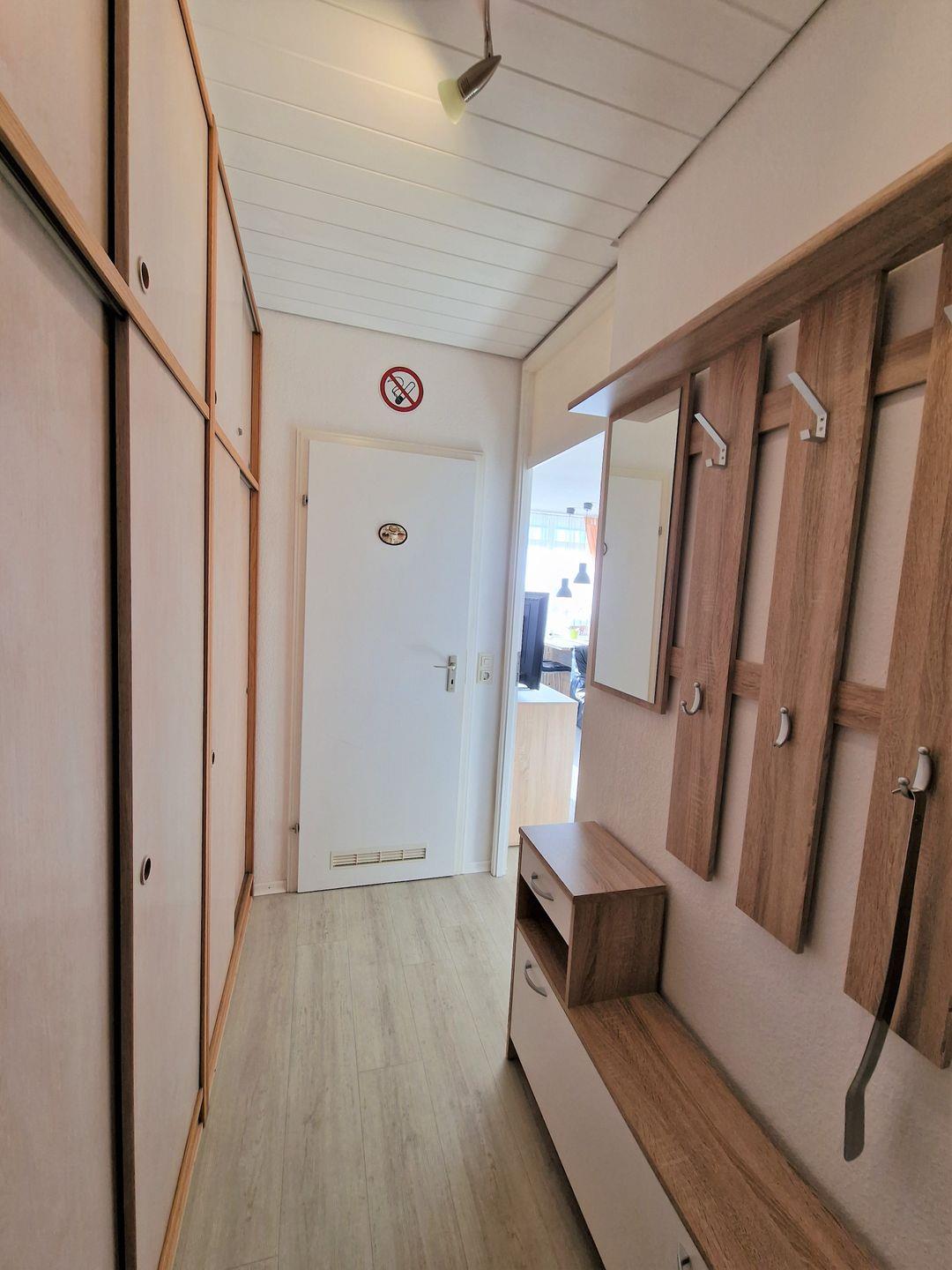 Sonnige und gepflegte Ferienwohnung, komplett mit hellem PVC-Laminat ausgelegt, in der 1. Etage mit Blick ins Grüne.