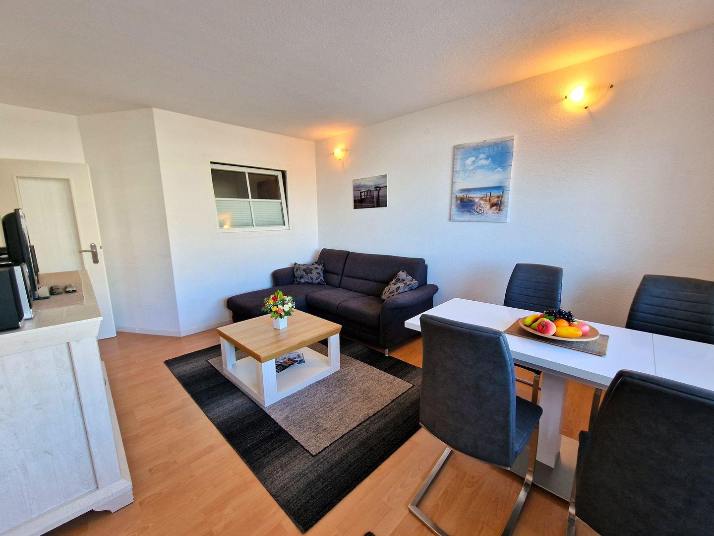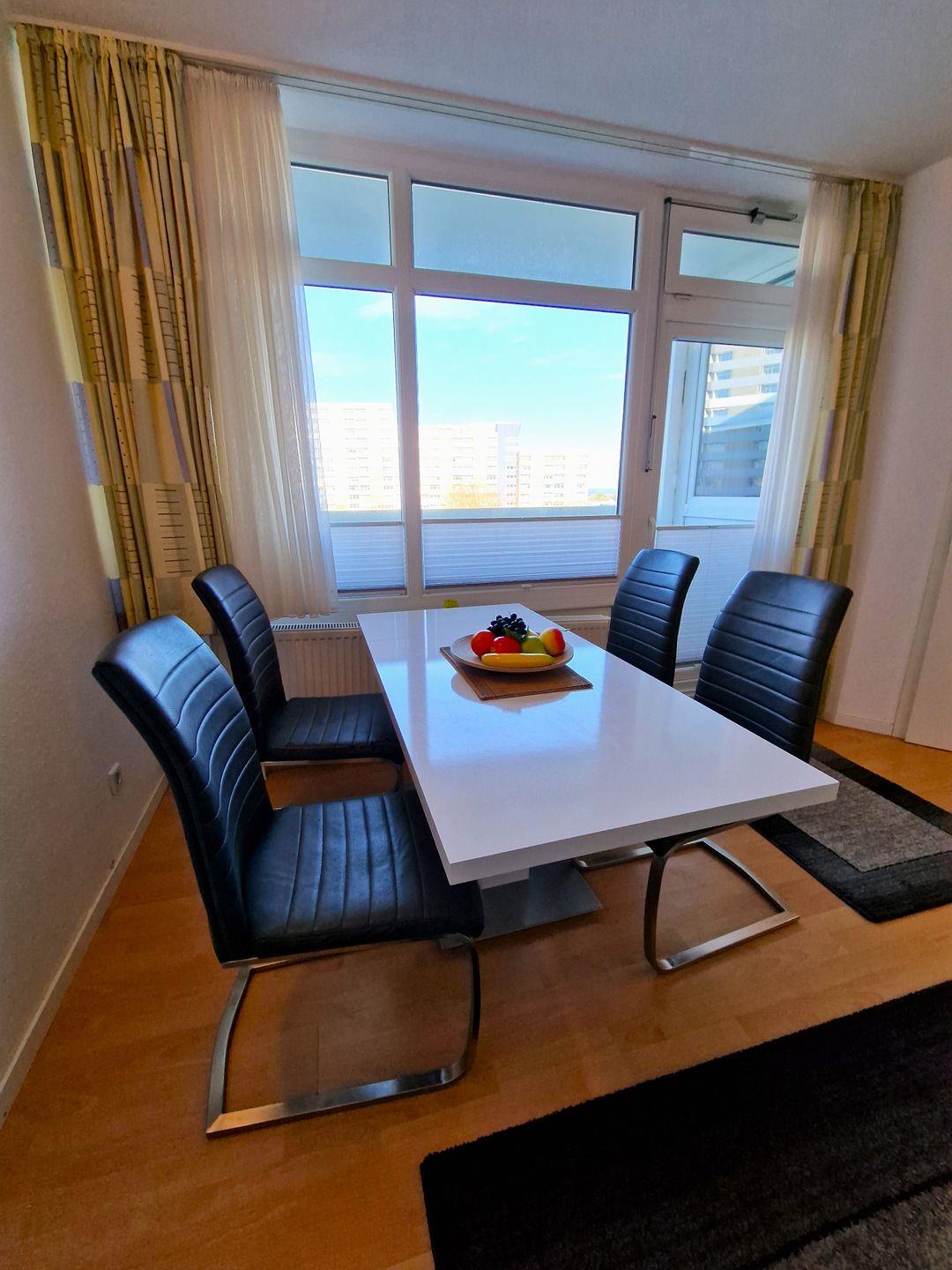 Renovierte und helle Ferienwohnung in der 4. Etage mit Balkon zur Nordseite und etwas Seeblick.