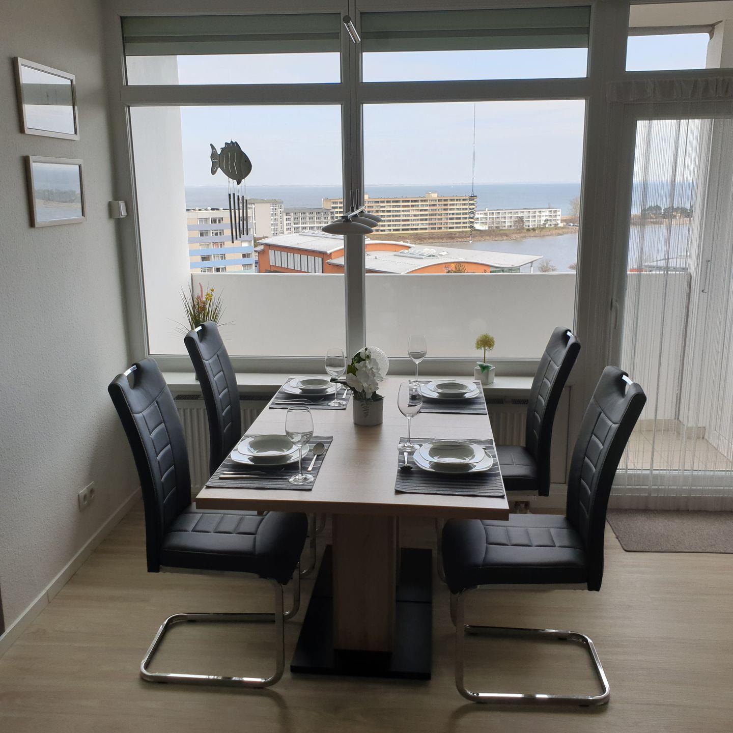 Vom Balkon aus kann der herrliche Blick über den Binnensee sowie der Ostsee in Richtung Fehmarn genossen werden.