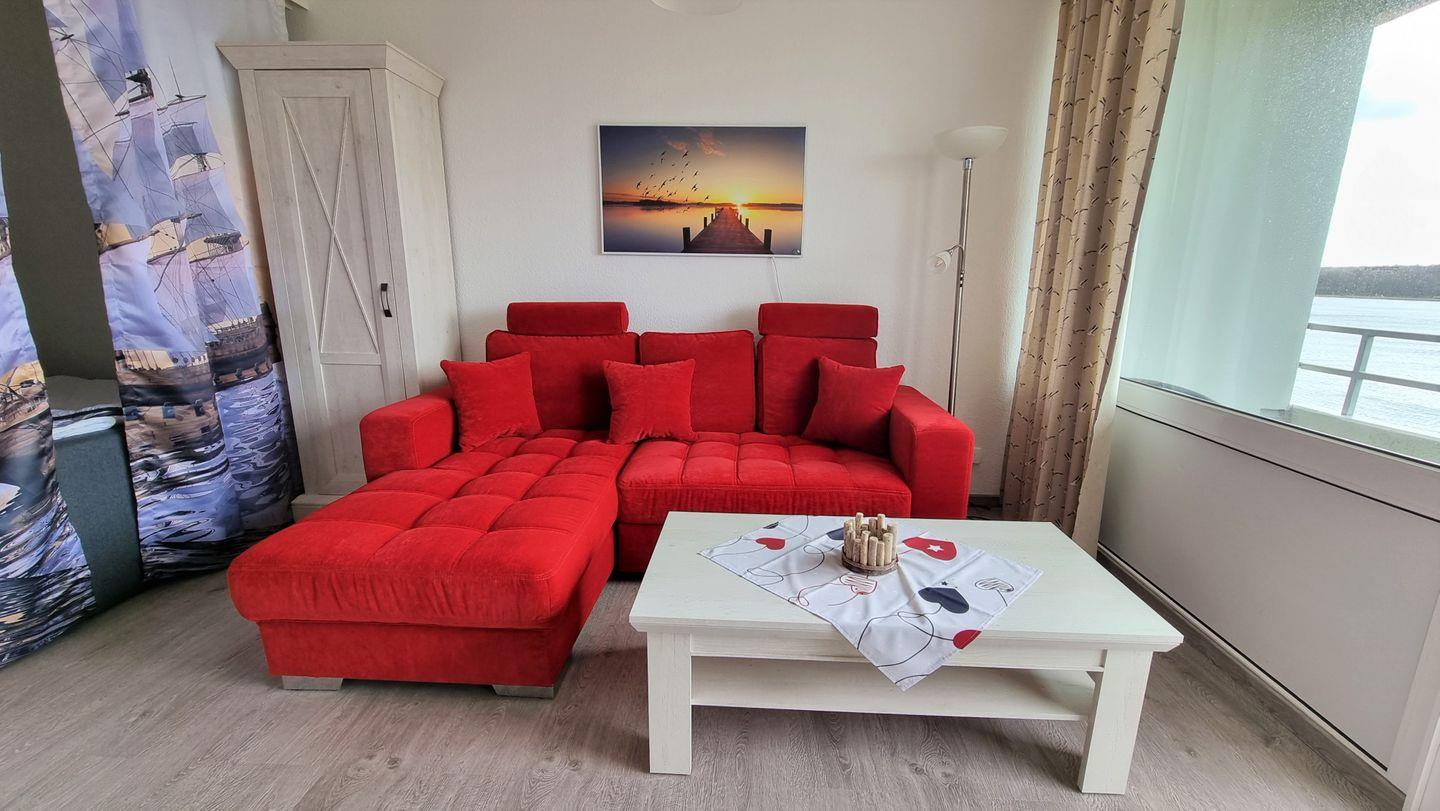 Sehr schön aufeinander abgestimmte Ferienwohnung in der 4. Etage mit Balkon zur Südseite und Blickrichtung direkt über den Binnensee.