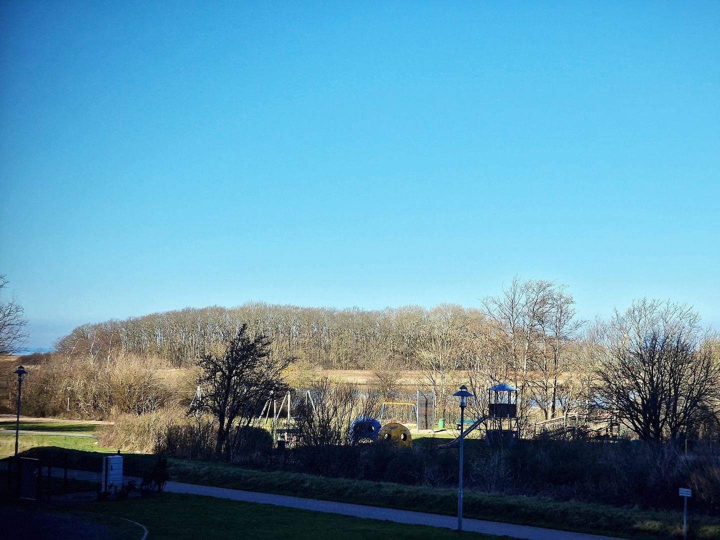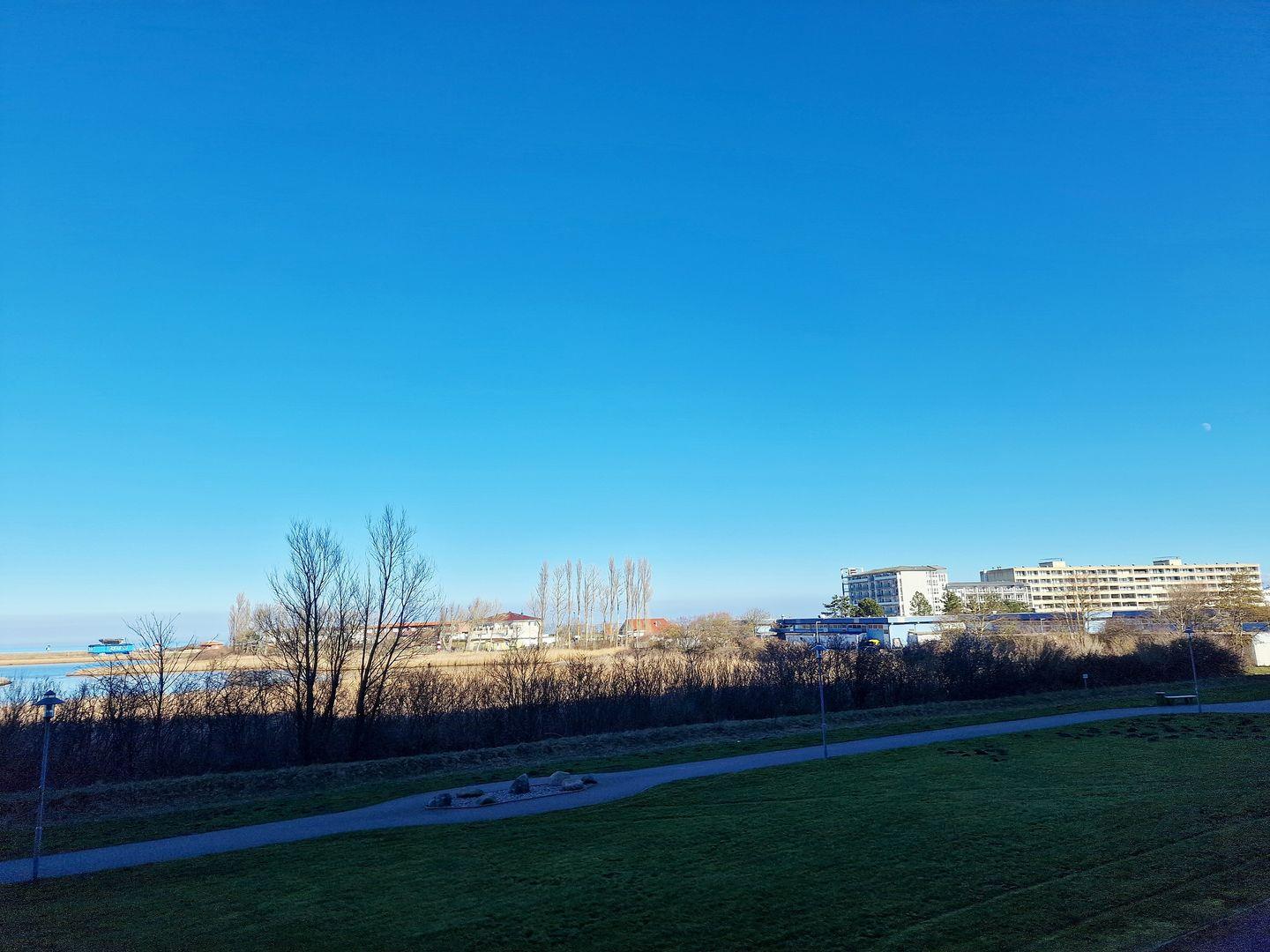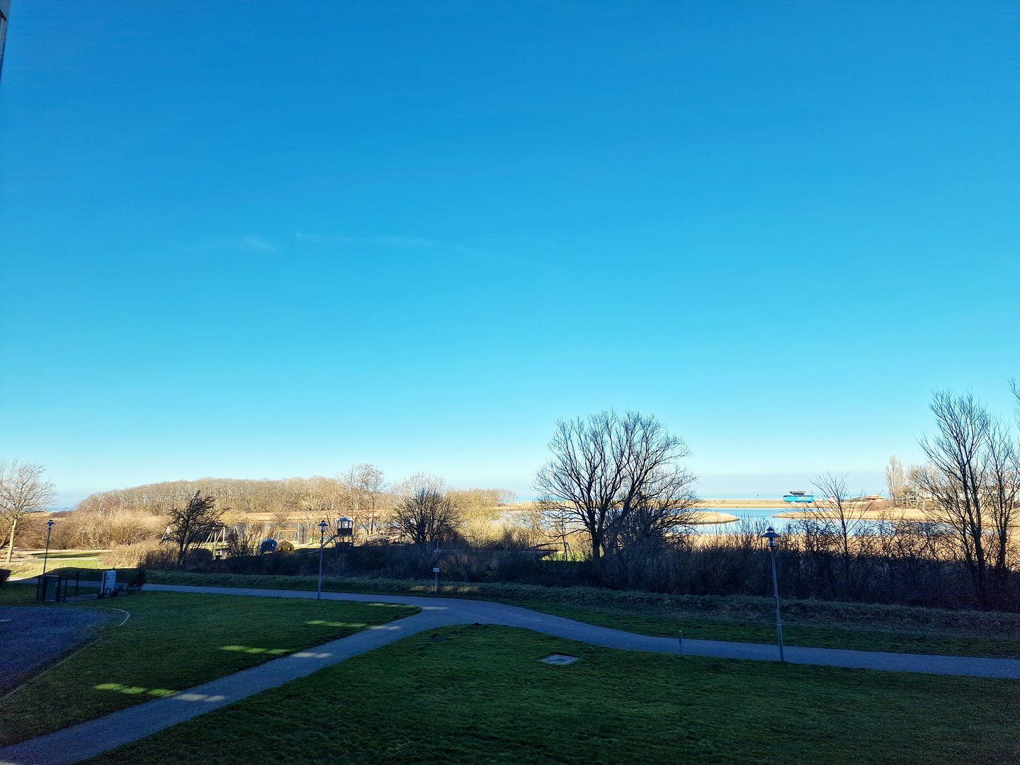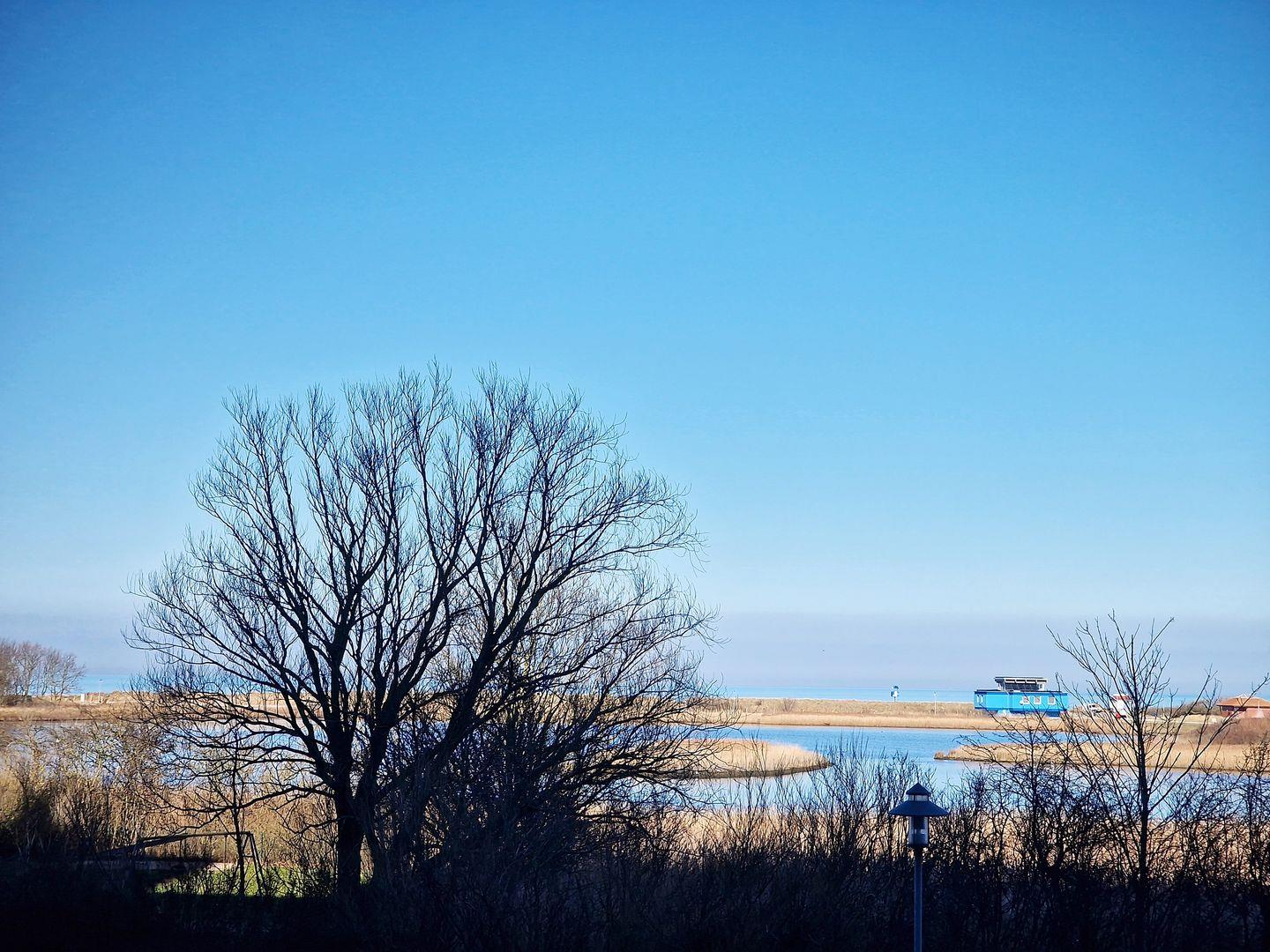 Balkon zur Nordseite mit Blick auf die Ostsee und die Salzwiesen.