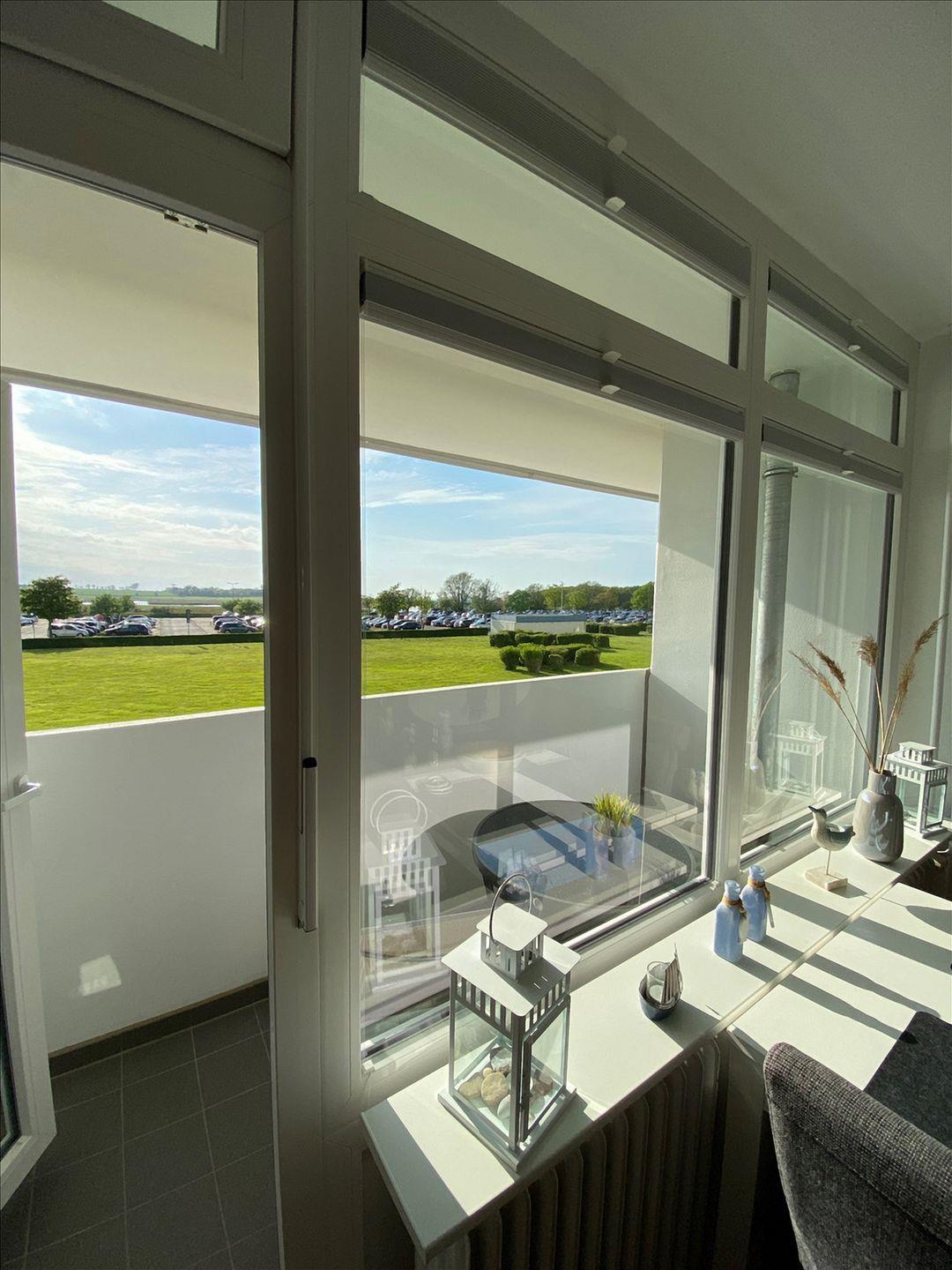 Freundlich eingerichtete Ferienwohnung in der 1. Etage mit Balkon zur Westseite mit Blick Richtung Naturschutzgebiet und Meer.