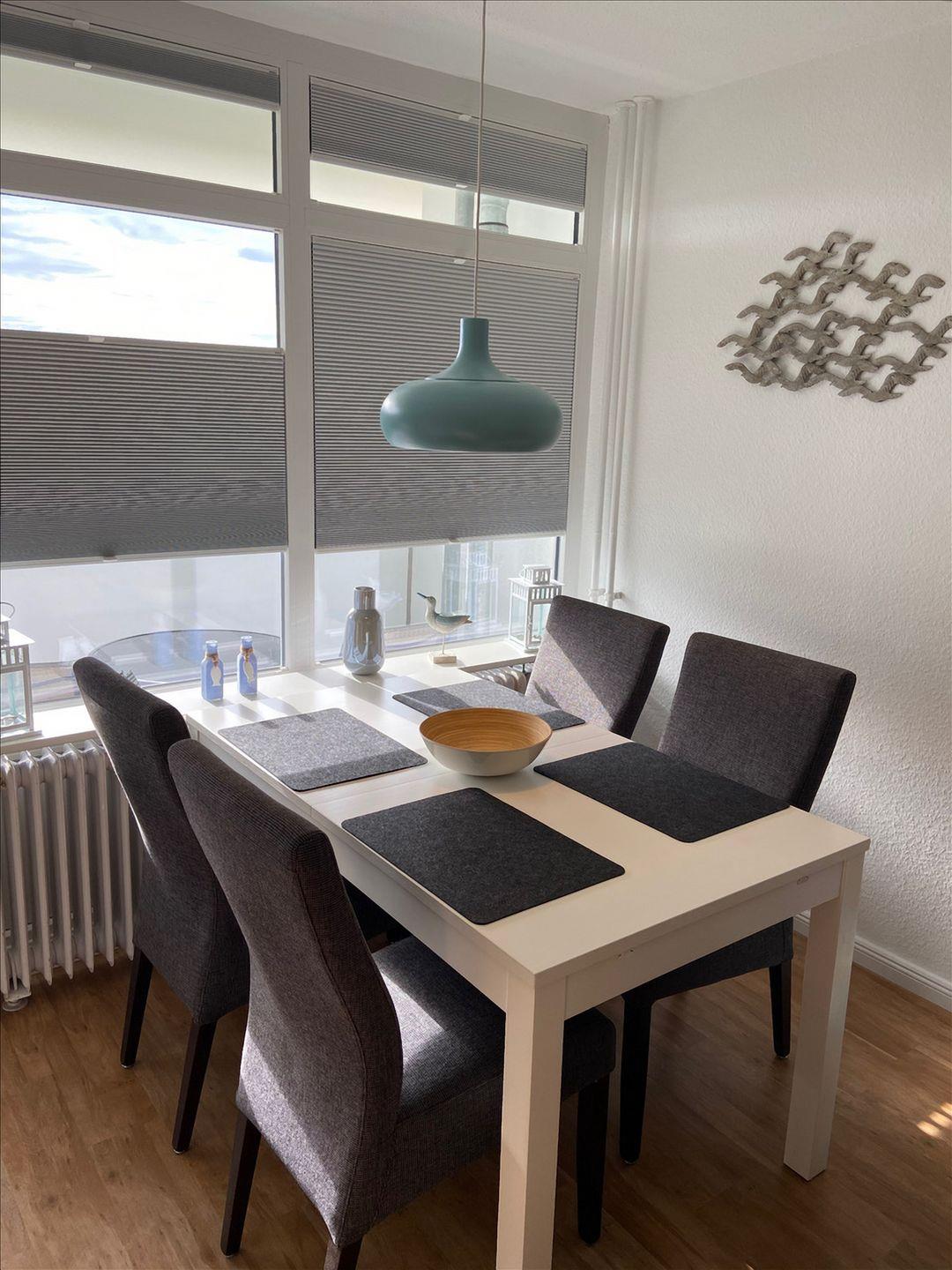 Freundlich eingerichtete Ferienwohnung in der 1. Etage mit Balkon zur Westseite mit Blick Richtung Naturschutzgebiet und Meer