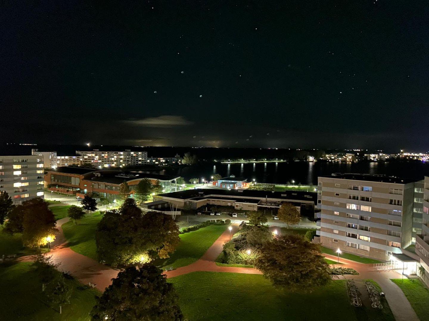 Sehr gepflegte, schöne Ferienwohnung in der 10. Etage mit Balkon zur Nordseite (Innenhof) und schönem Binnensee- und Ostseeblick.