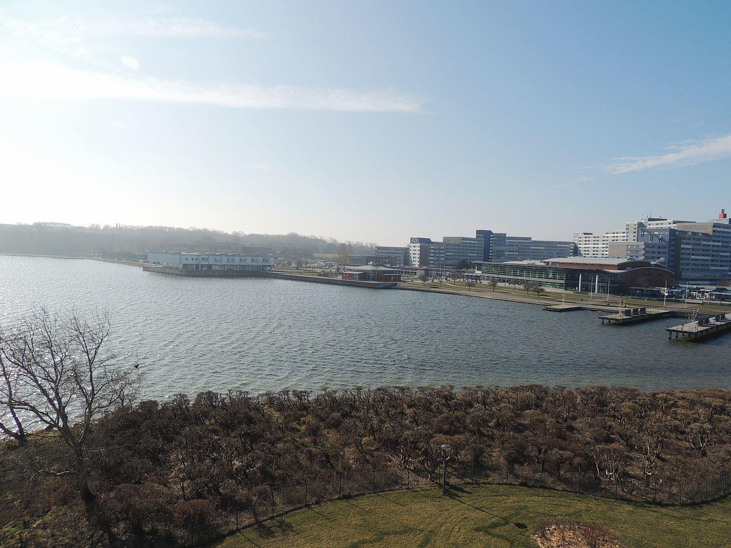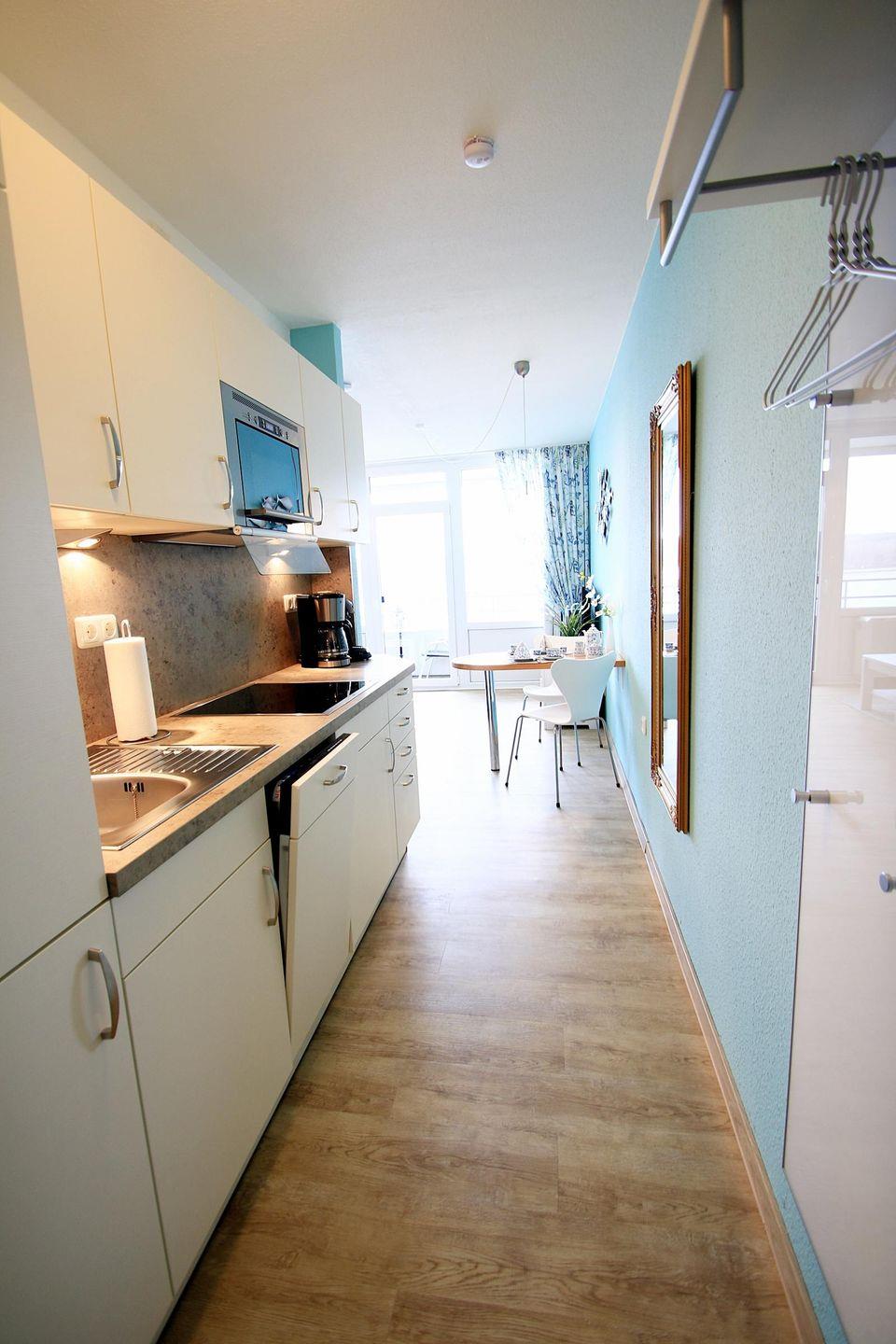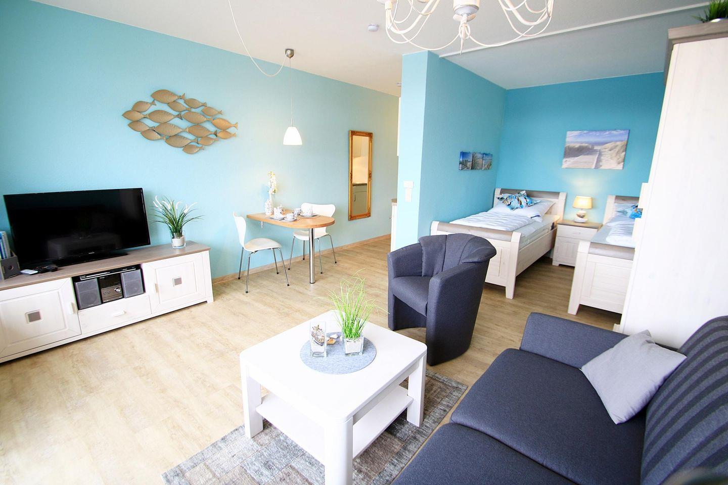 Helle und harmonisch aufeinander abgestimmte Ferienwohnung in der 4. Etage mit Balkon zur Südseite und Blickrichtung über den Binnensee.