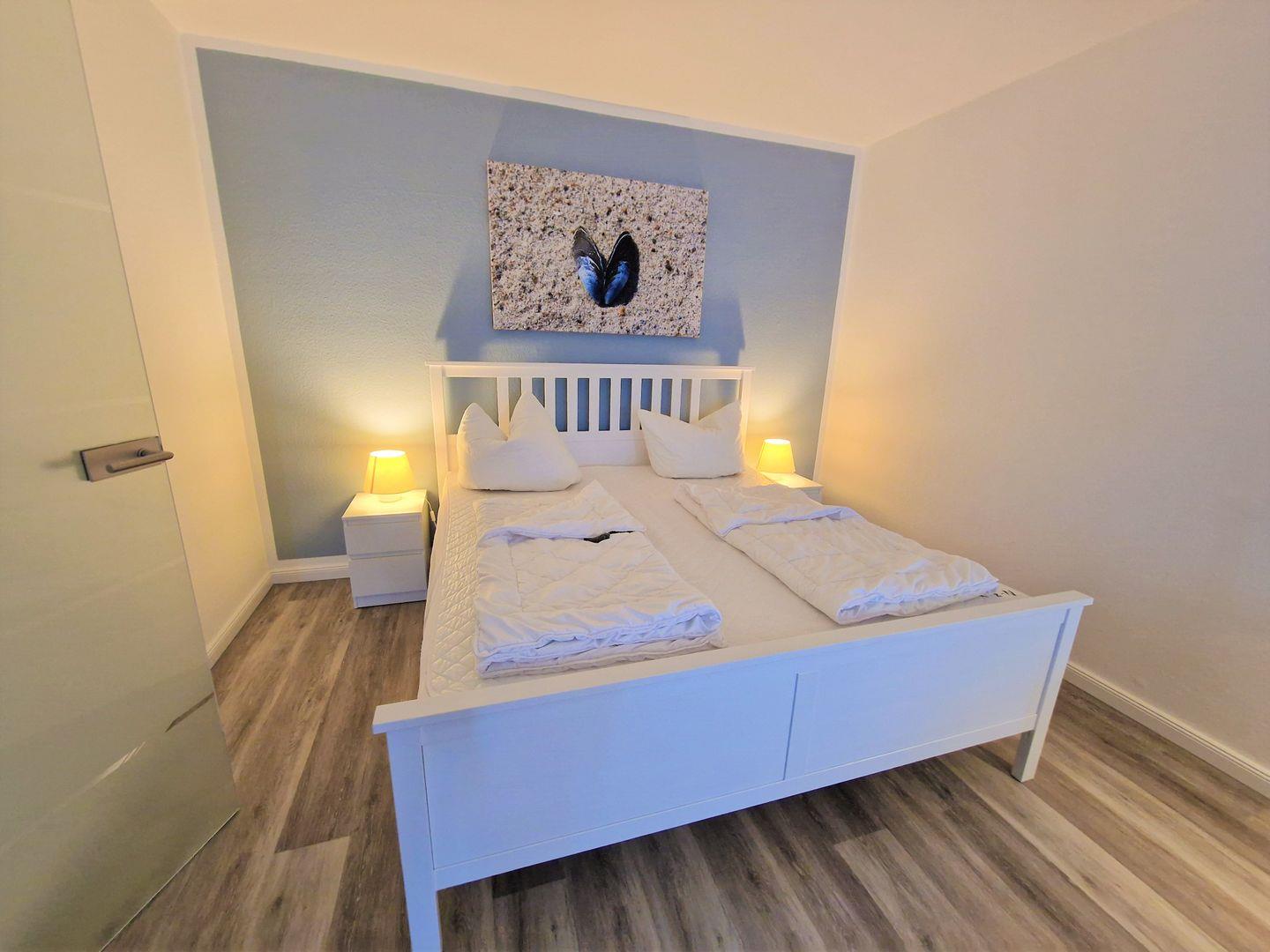 Im Schlafbereich befindet sich ein Doppelbett (180x200) für eine angenehme Nachtruhe.
