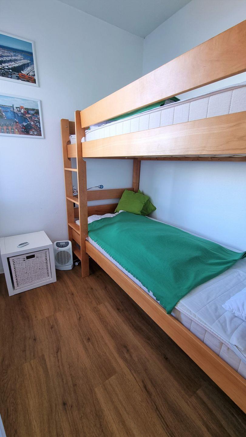 Das Kinderzimmer mit einem Etagenbett (je 90*200) ist mit einer Tür zum Wohnzimmer getrennt.