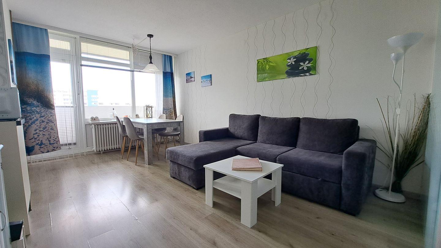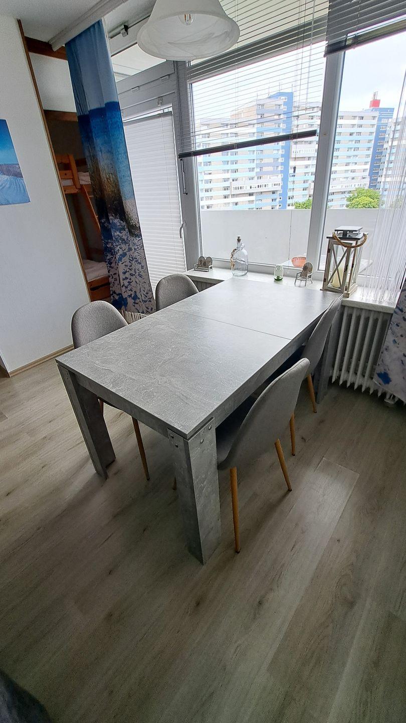 Modern ausgestattete Wohnung in der 6. Etage mit Blick in den Parkähnlich angelegten Innenhof bis zum Meer.