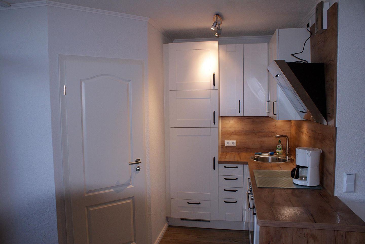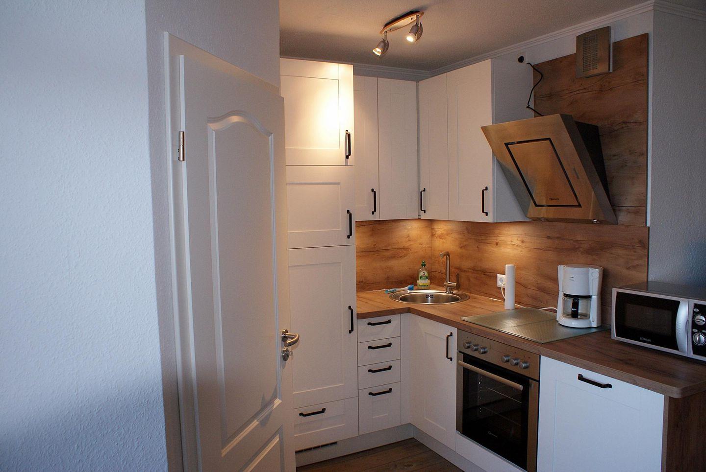 Die tolle Einbauküche verfügt über einen Backofen, einen Geschirrspüler, ein 4er-Ceranfeld sowie einen Kühlschrank mit Gefrierfach und ist gut ausgestattet.