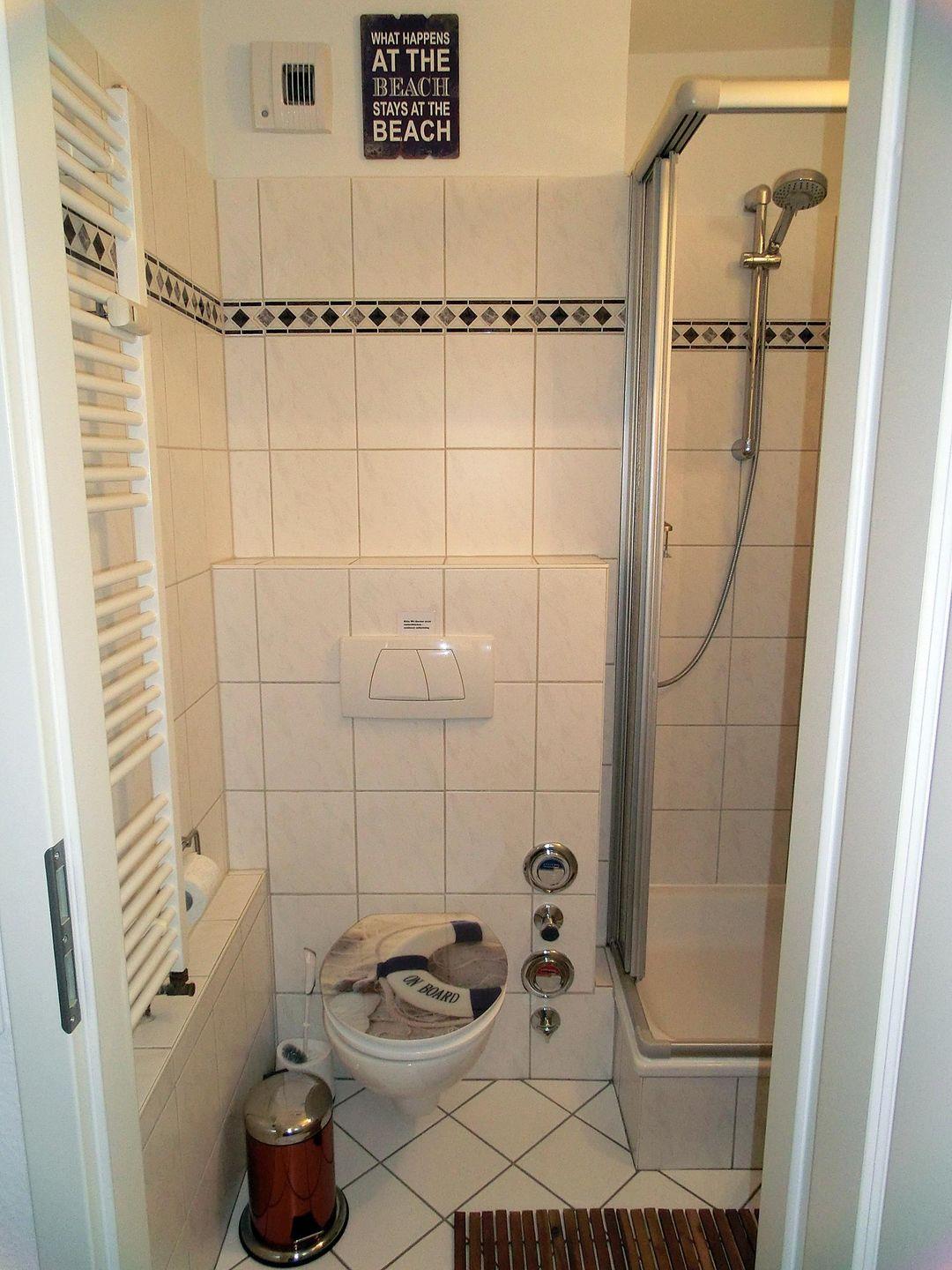 Im hellen Badezimmer stehen eine Duschkabine und WC zur Verfügung.