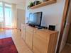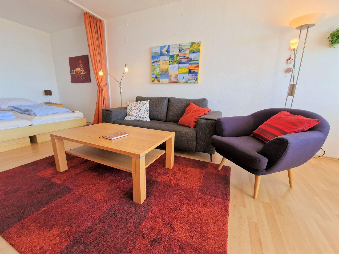 Wohnbereich mit 3er Couch und Sessel, TV und Musikanlage mit CD u.USB. Die Essecke befindet sich direkt am Fenster- Sie geniessen beim Essen den Weitblick.