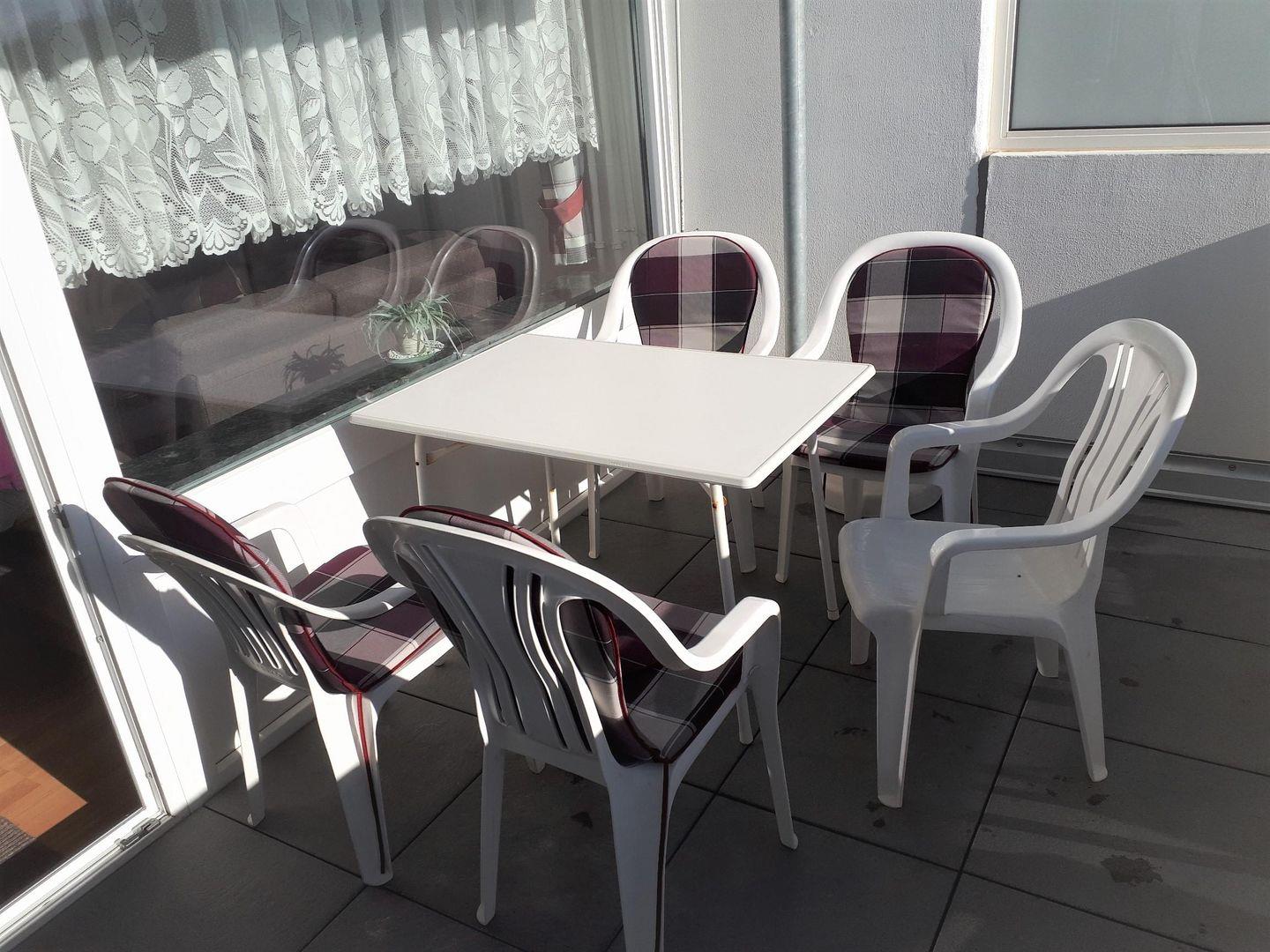Diese helle und komfortable Wohnung in der 4. Etage mit Blick zur sonnenverwöhnten Südseite, hat einen großen Balkon, der mit Tisch, 5 Stühlen und Markise ausgestattet ist.
