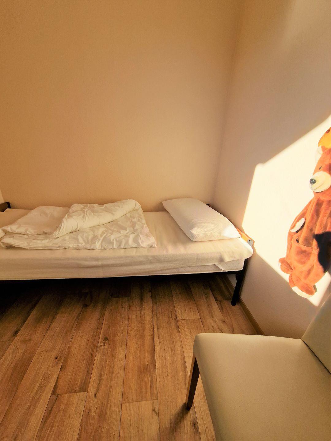 Kinderzimmer mit einem Einzelbett (80 x 190 cm).