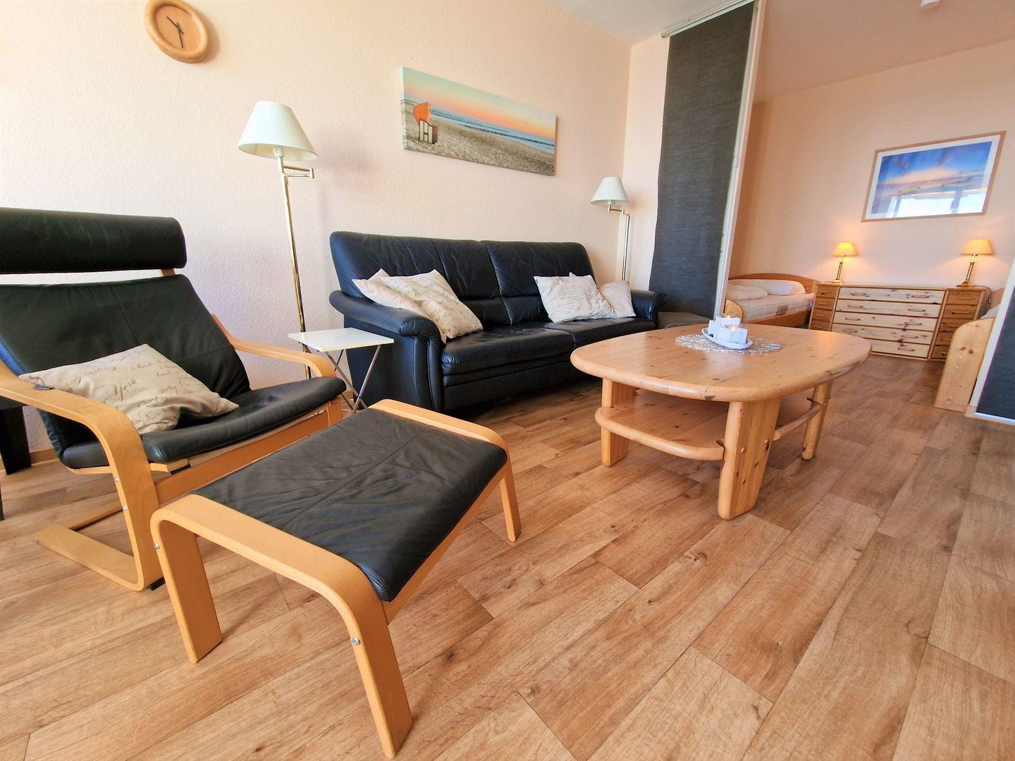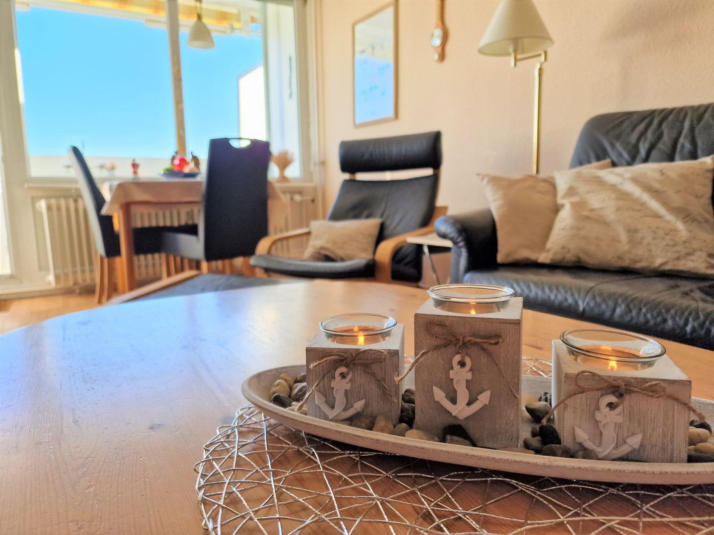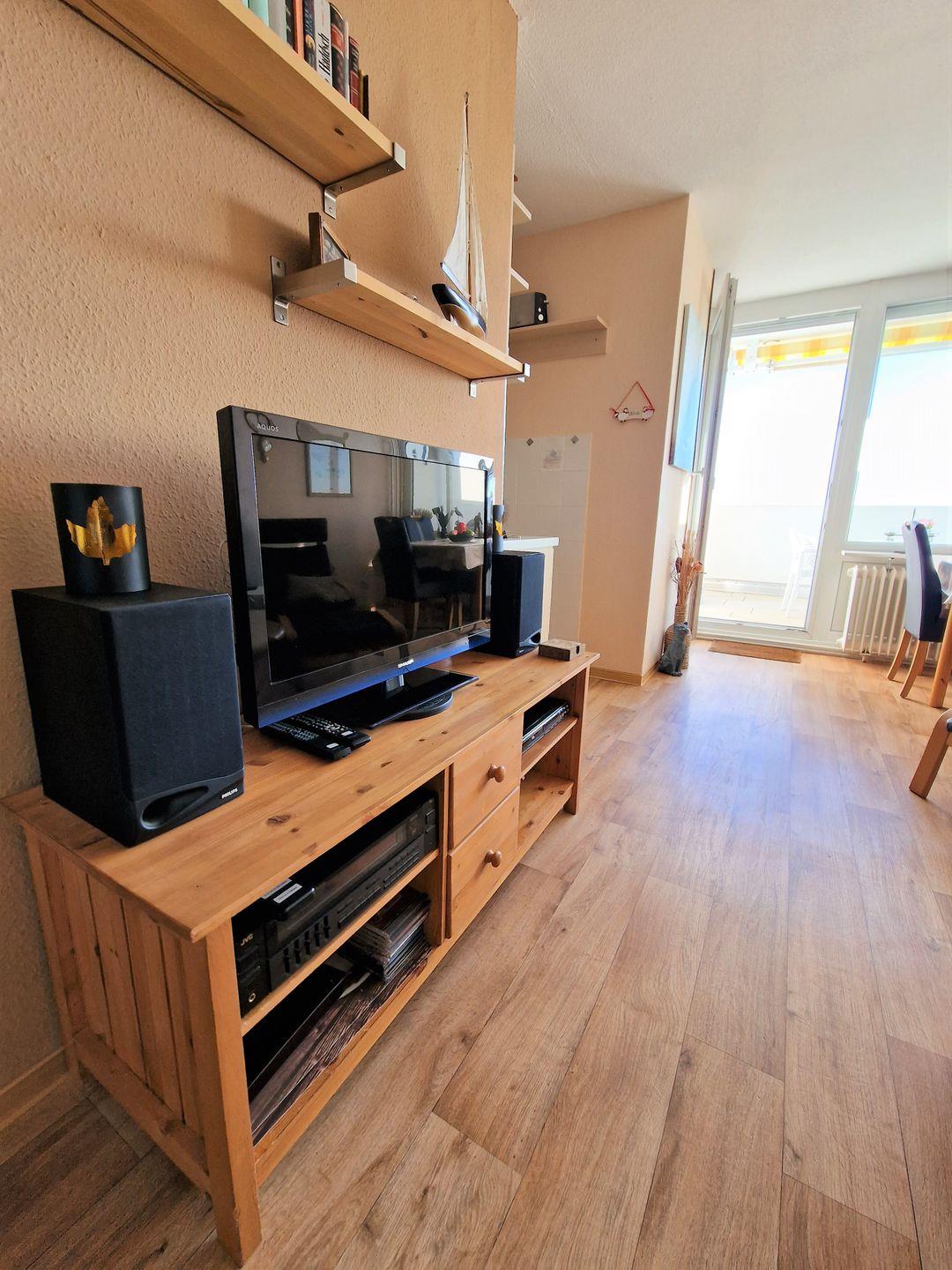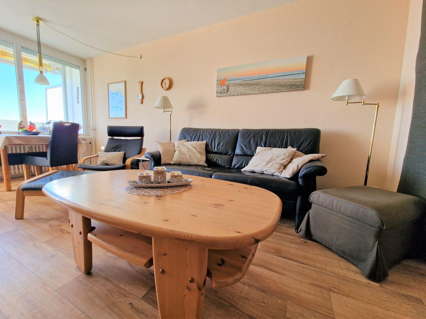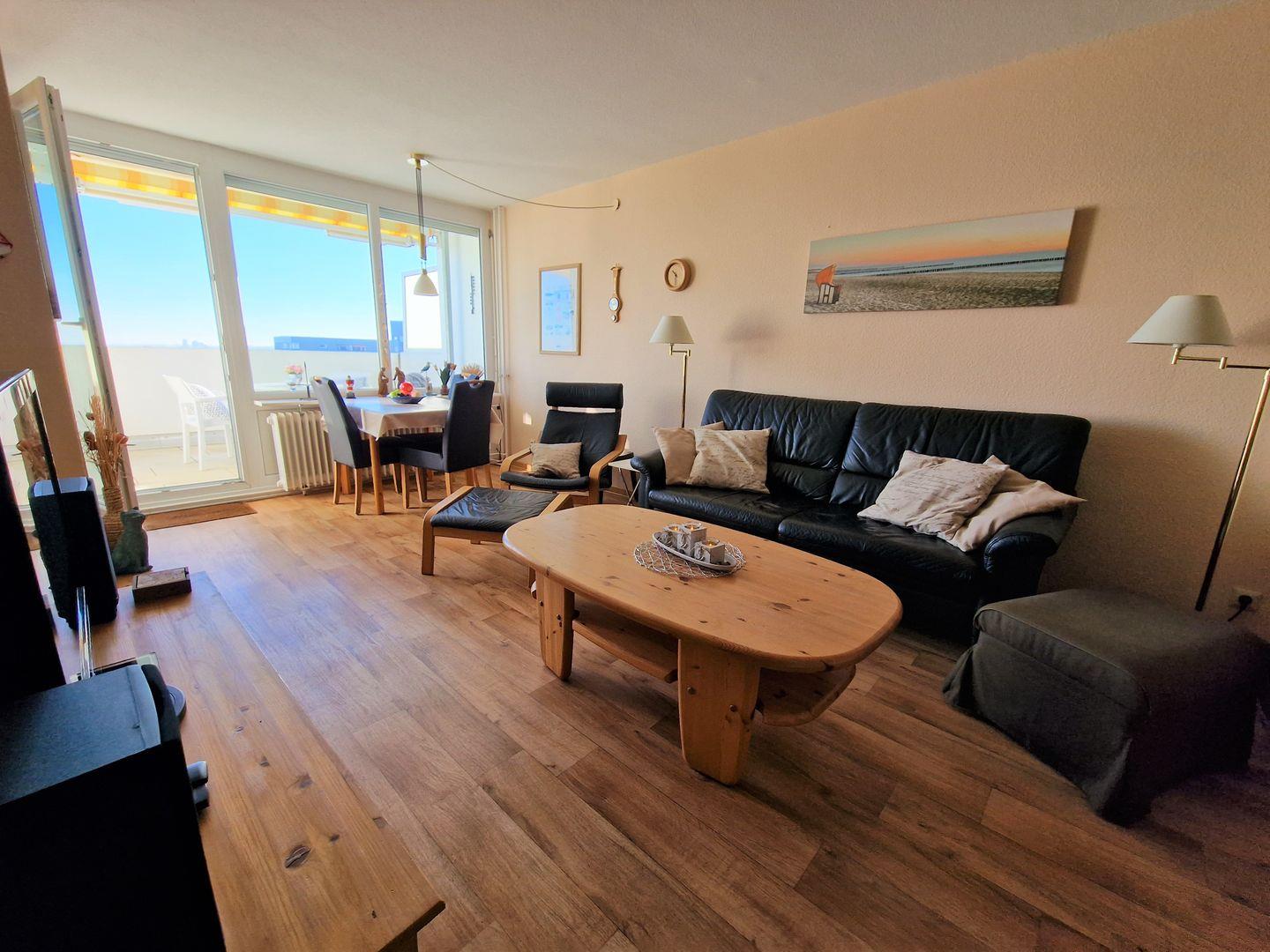 Sehr schöne und modern eingerichtete Ferienwohnung mit PVC-Boden in Holzoptik in der 6. Etage mit großem Balkon zur Ostseite.