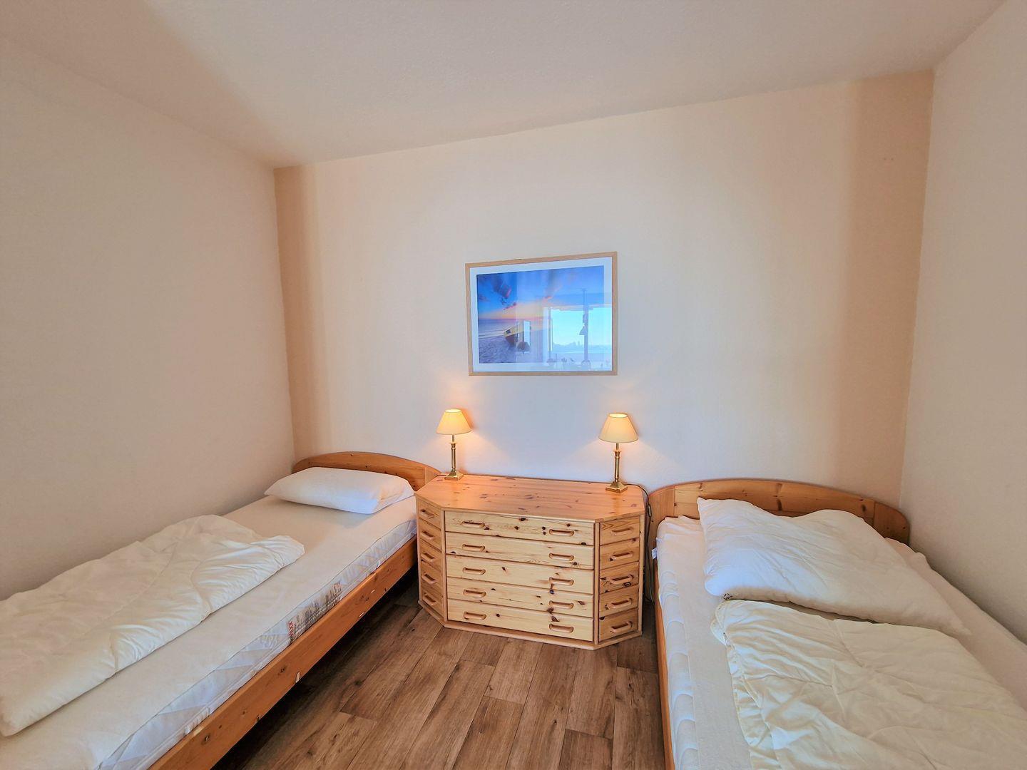 Schlafbereich (2 neue 7-ZonenKaltschaum-Matratzen) mit zwei Einzelbetten und durch Schiebeelemente vom Wohnraum abzutrennen.
