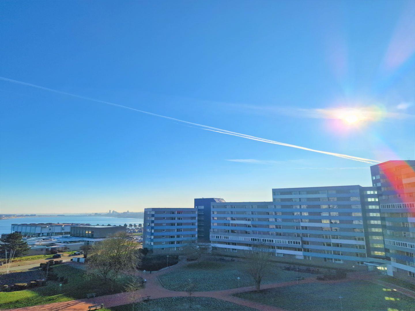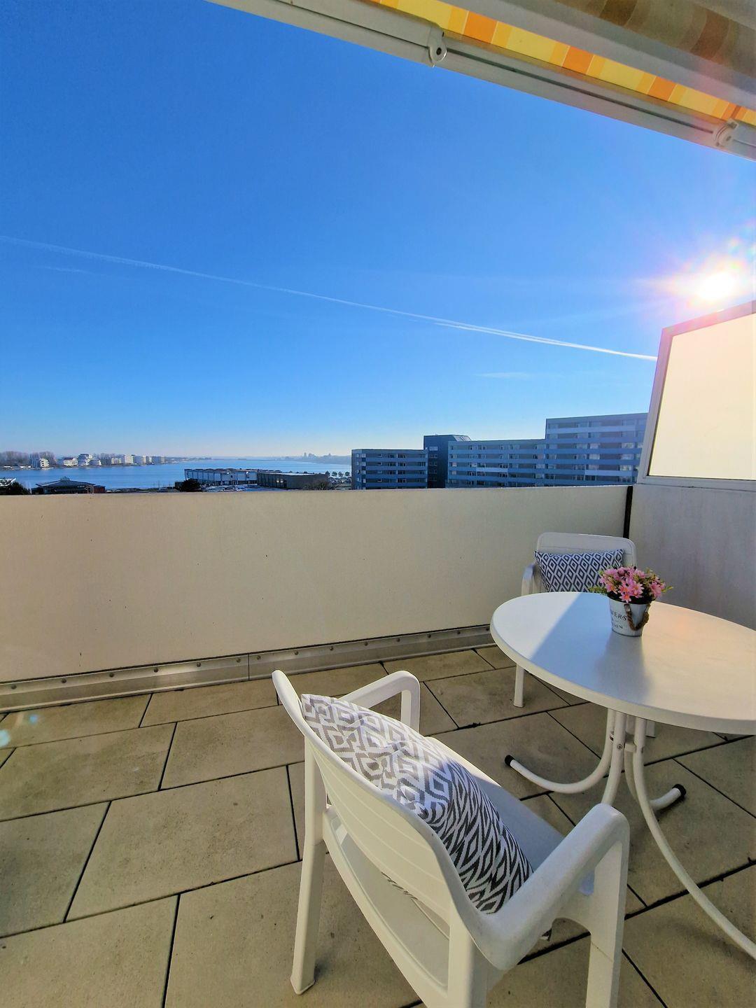 Genießen Sie hier den Blick über den Binnensee Richtung Ostsee und Yachthafen.