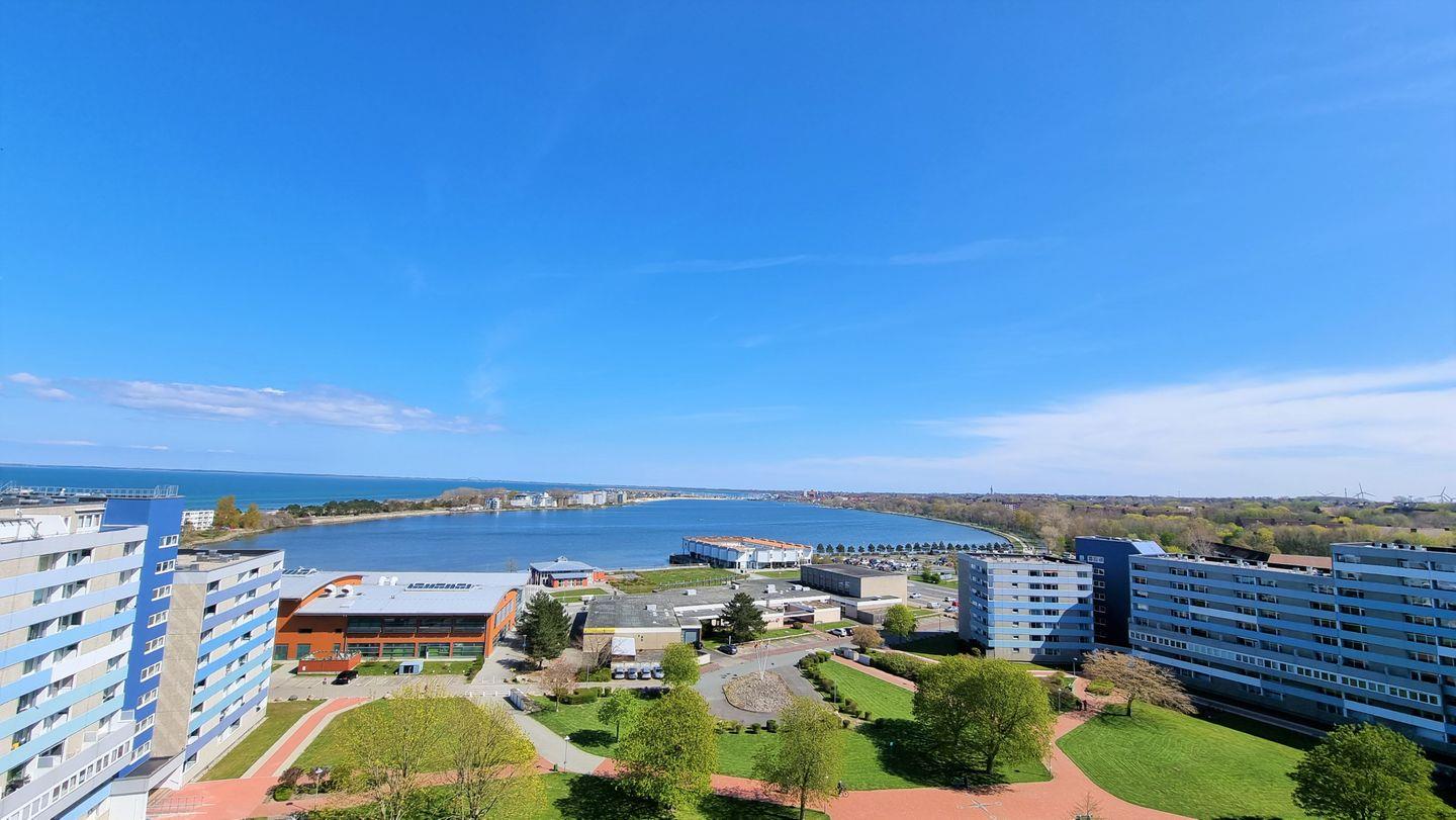 Moderne Ferienwohnung mit einem großen Balkon in der 12 Etage, mit wunderschönem Ausblick über den Binnensee, zum Yachthafen und zur Ostsee Richtung Fehmarn - hier bleiben keine Wünsche offen!