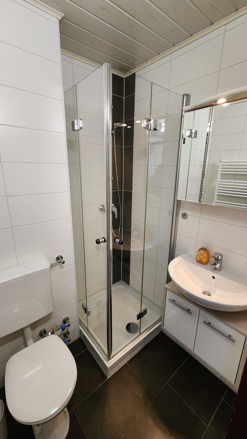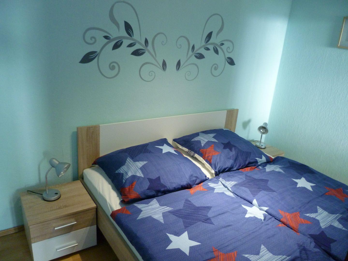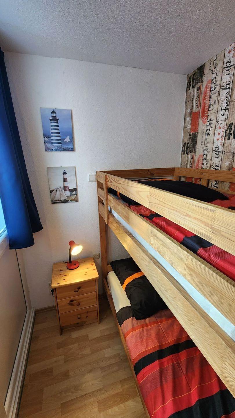 Das Schlafzimmer ist der ideale Rückzugsort, um nach einem erlebnisreichen Tag am Strand zur Ruhe zu kommen. Hier stehen Ihnen ein komfortables Bett und ausreichend Stauraum in der Garderobe und Kommode zur Verfügung. Das Badezimmer verfügt über eine Dusche mit Wanne, ein Waschbecken und ein WC – alles, was Sie für erholsame Hygienemomente benötigen.