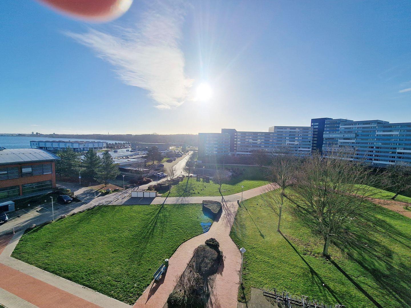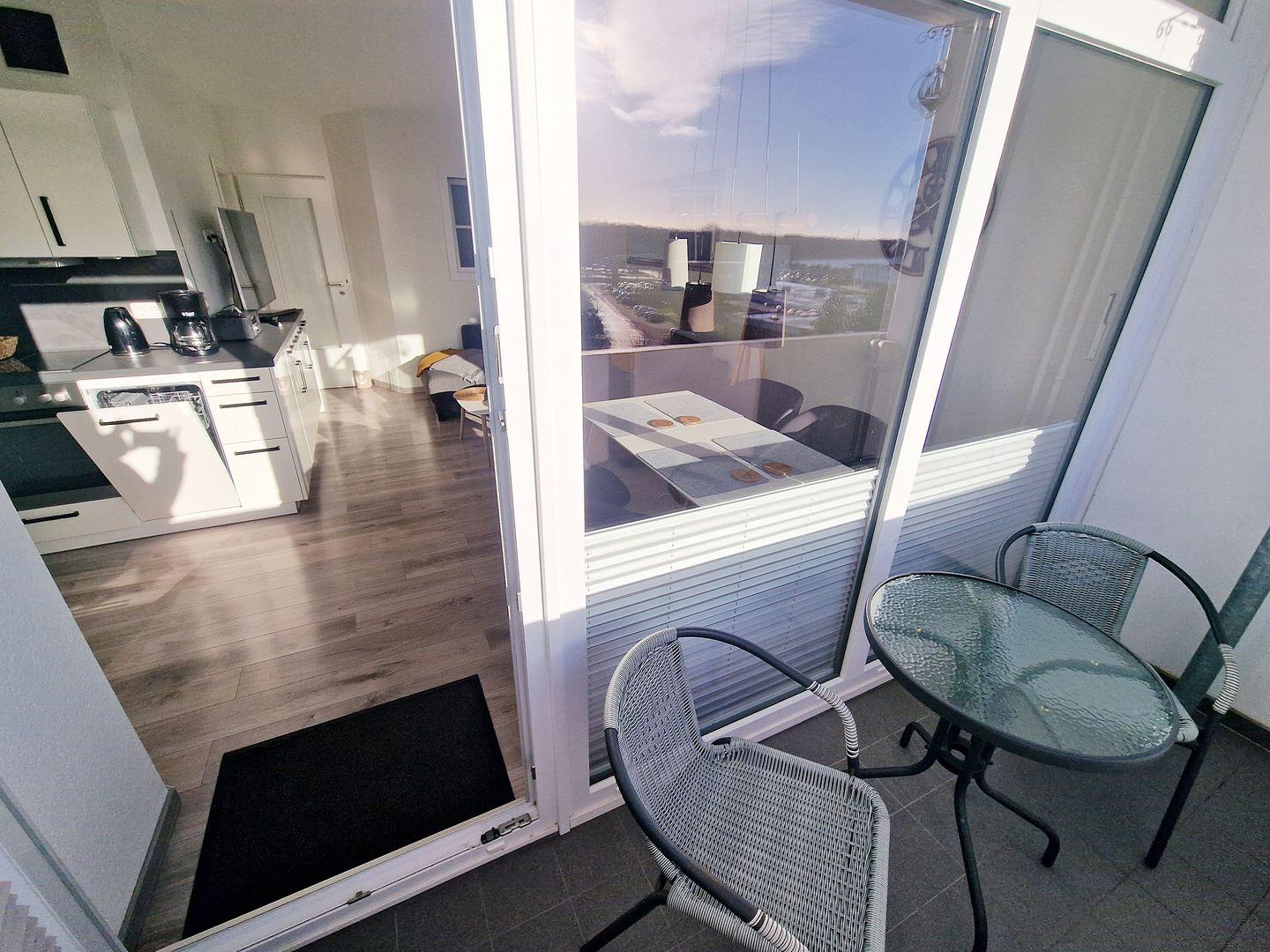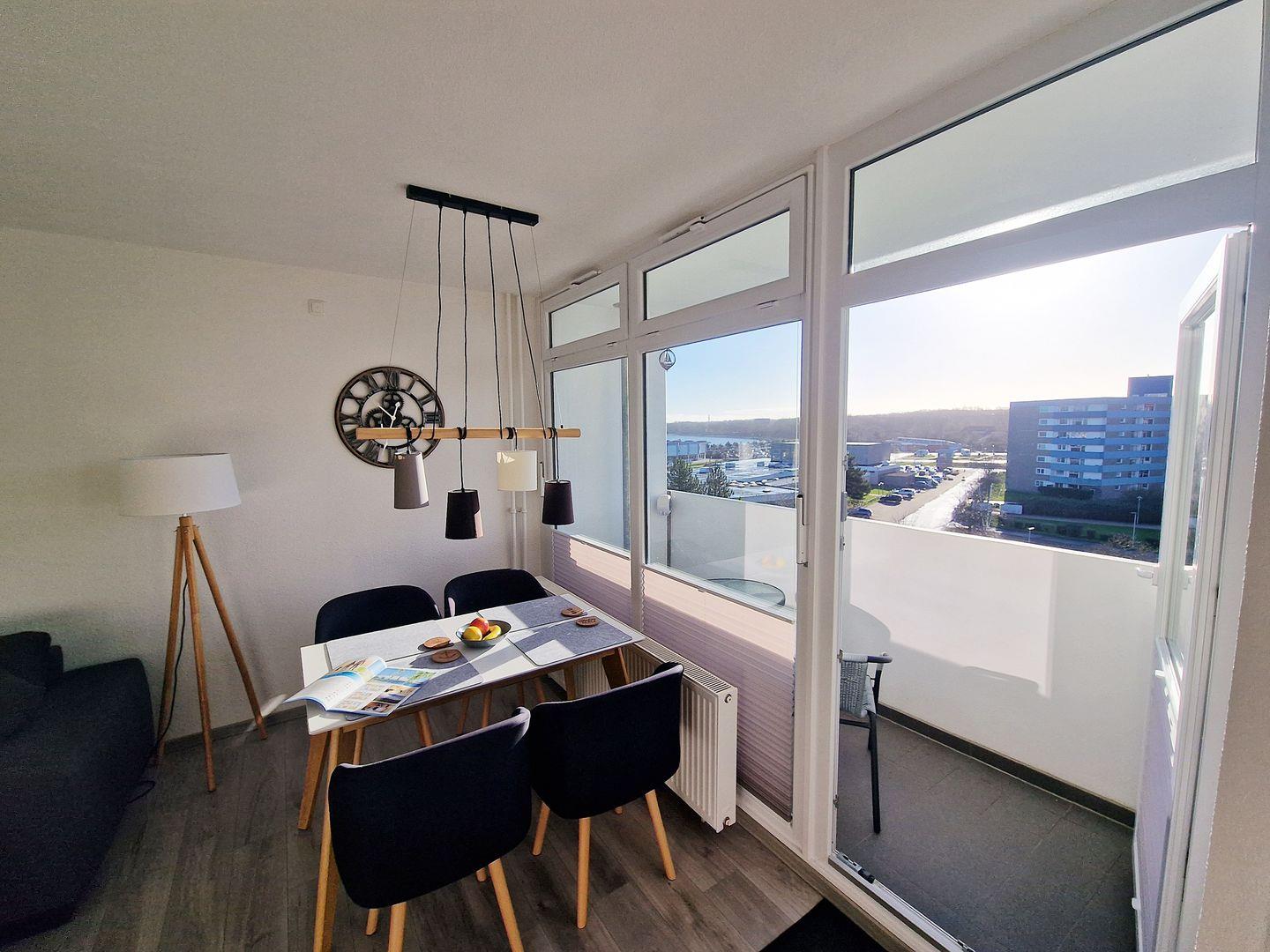 Der Balkon ist mit Sitzgelegenheiten ausgestattet u. zur Südseite ausgerichtet.