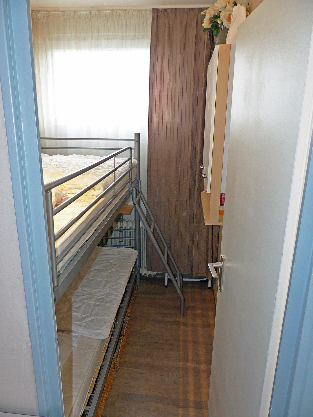 Im Kinderzimmer(mit Tür) befindet sich ein großes Etagenbett.