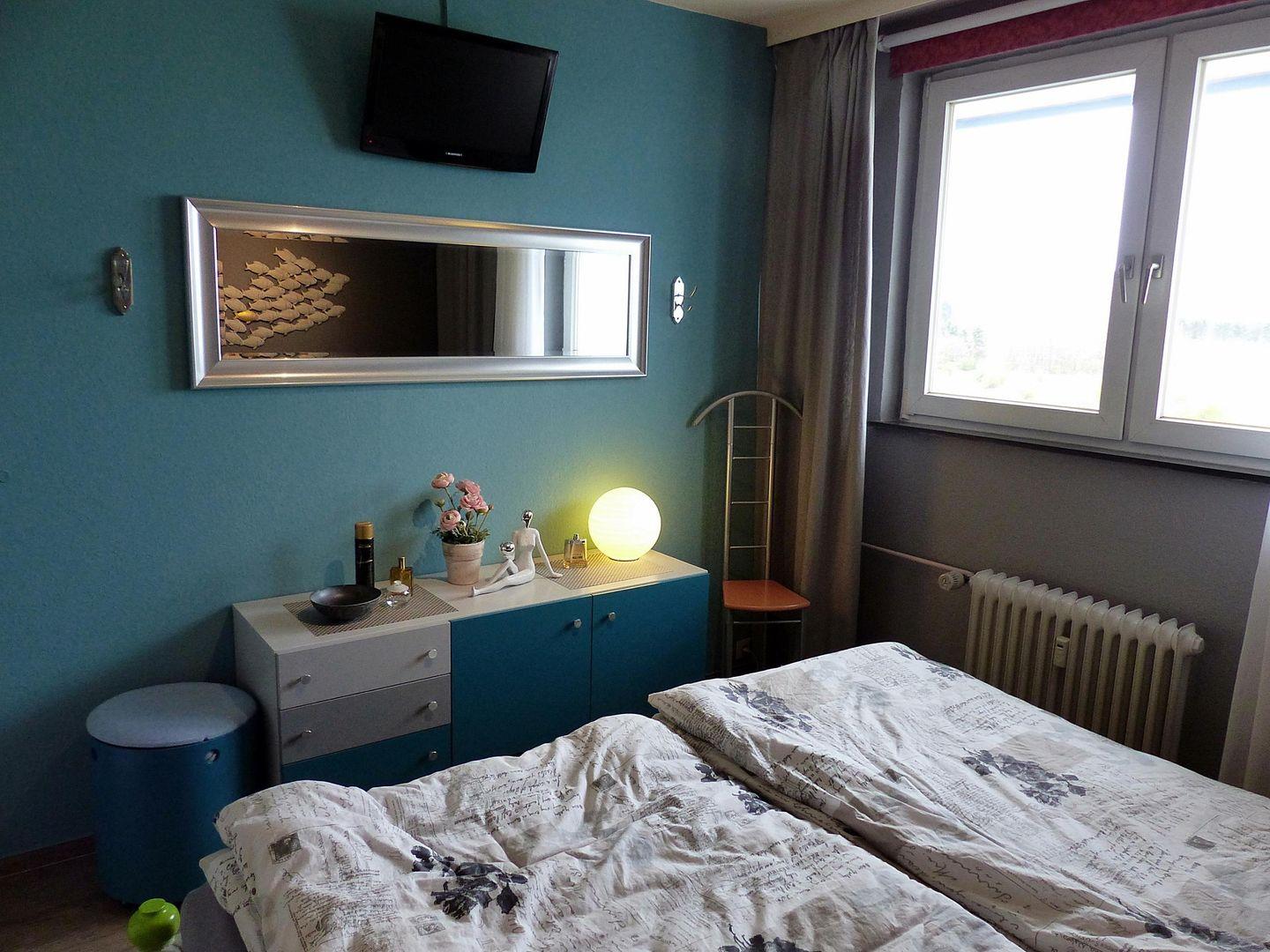 Einen erholsamen Schlaf finden Sie im netten Schlafzimmer mit Doppelbett und TV.