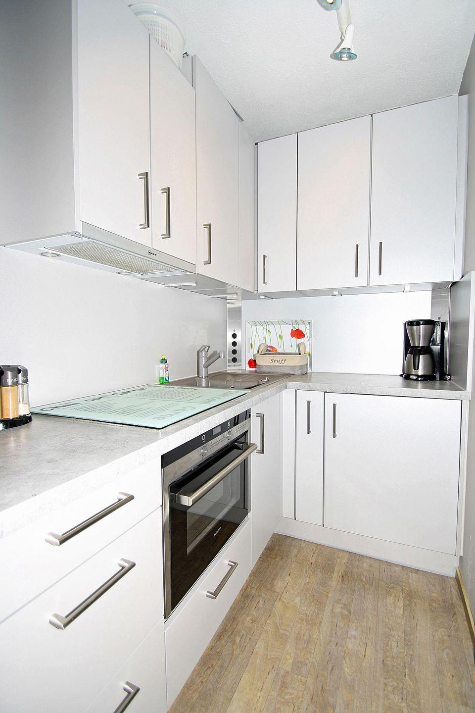 Die kleine aber feine Küche lädt zum Kochen ein. Backofen mit integrierter Mikrowelle stehen Ihnen, ebenso wie eine Waschmaschine im Flur, zur Verfügung.