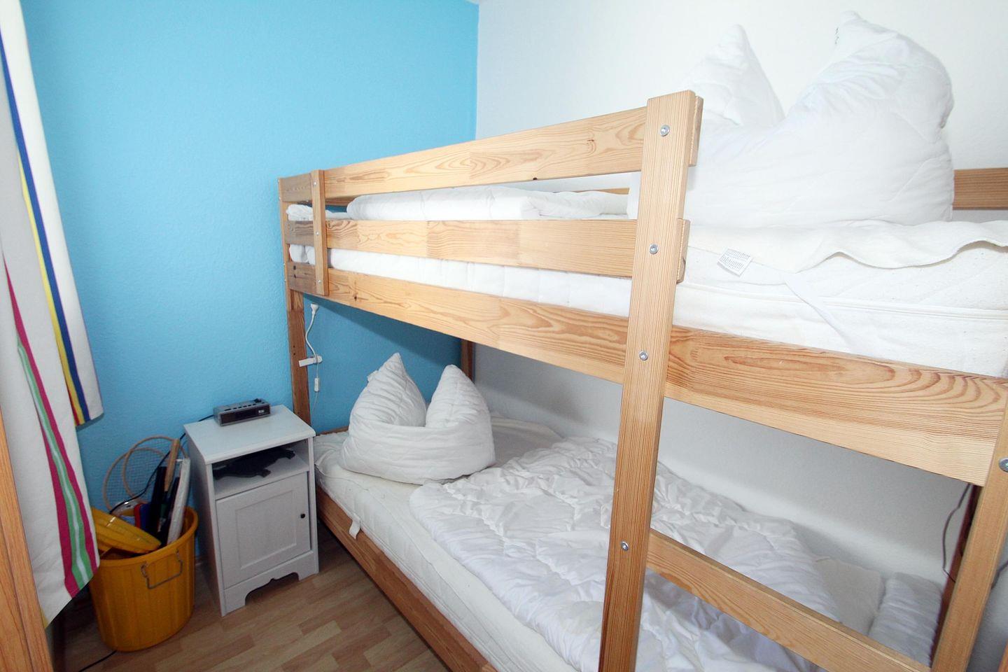 Das Kinderzimmer ist mit einem je 90x200cm großen Etagenbett ausgestattet- zumindest unten auch für Erwachsene geeignet.